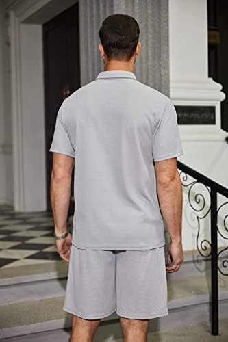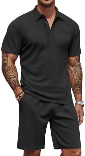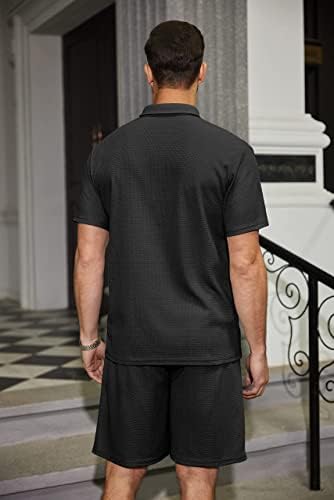 COOFANDY Men’s Waffle Knit Polo Shirt and Shorts Set 2 Pieces Outfits Summer Suit Casual Tracksuit with Pockets