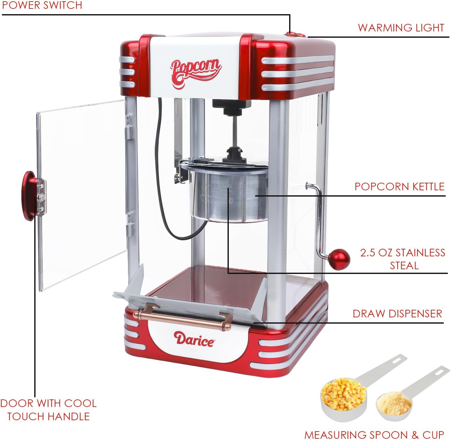 Still not convinced? Here are some of the amazing features of our popcorn machine:
