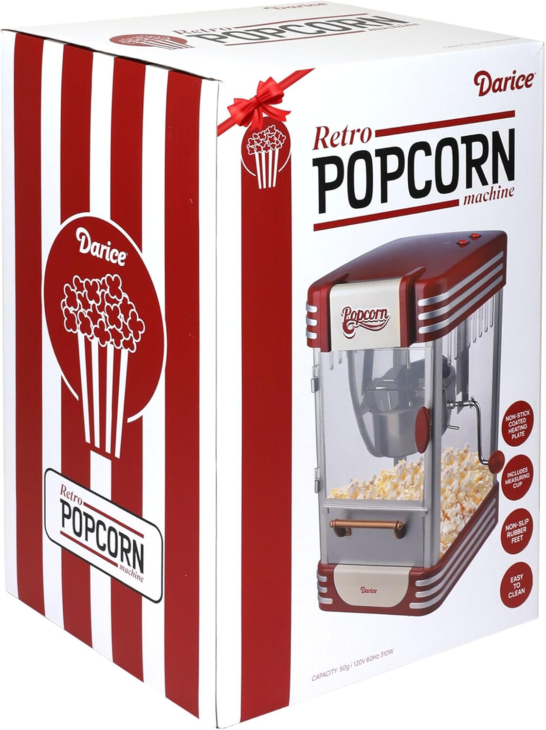 Darice Popcorn Machine – Retro Popcorn Maker with Measuring Cups – Non-Slip Popcorn Popper for Home, Carnival, Festival Stand – Non-Stick Popcorn Kettle Plate