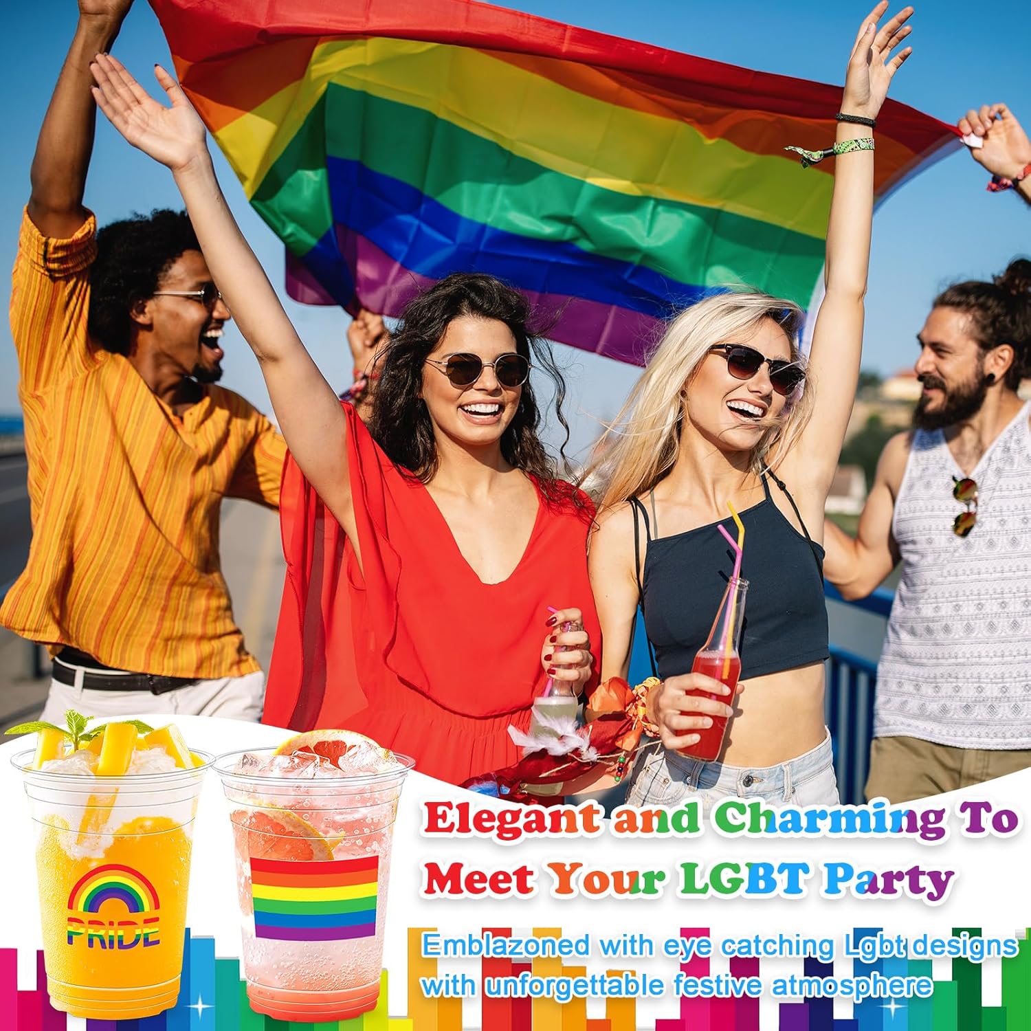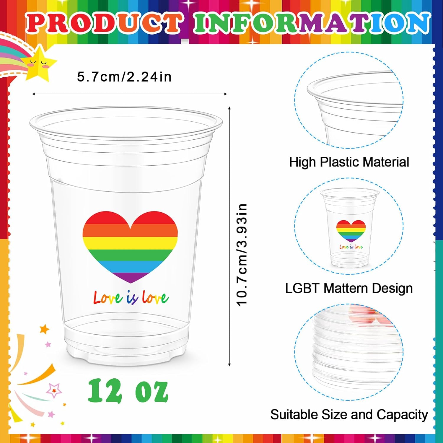 Reliable Material and Proper Capacity: crafted from quality PET plastic, these gay pride disposable cups 12 oz are not only visually appealing but also durable and reliable; The sturdy material ensures that the cups are resistant to breakage; The cups are also safe and odorless to use; With a capacity of approximately 12 oz, these cups offer the ideal size for serving a standard drink portion to your guests