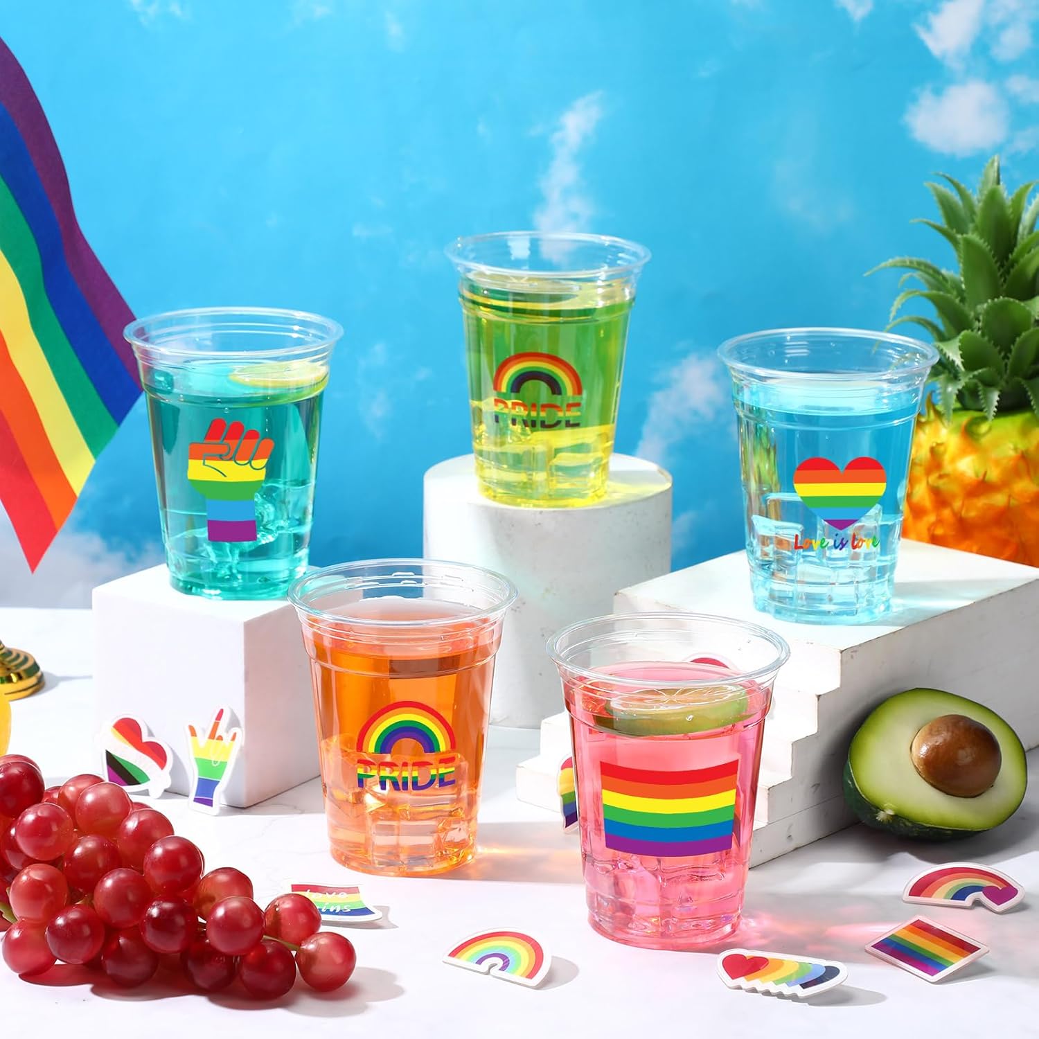 Rainbow and Pride Pattern Design: the vibrant rainbow and pride pattern design on these 12 ounce plastic cups adds a festive and celebratory touch to LGBTQ themed parties or events; The colorful design not only enhances the visual appeal of the cups but also serves as a symbol of inclusivity and support for the LGBTQ community, making them a nice choice for pride celebrations, parties, and gatherings