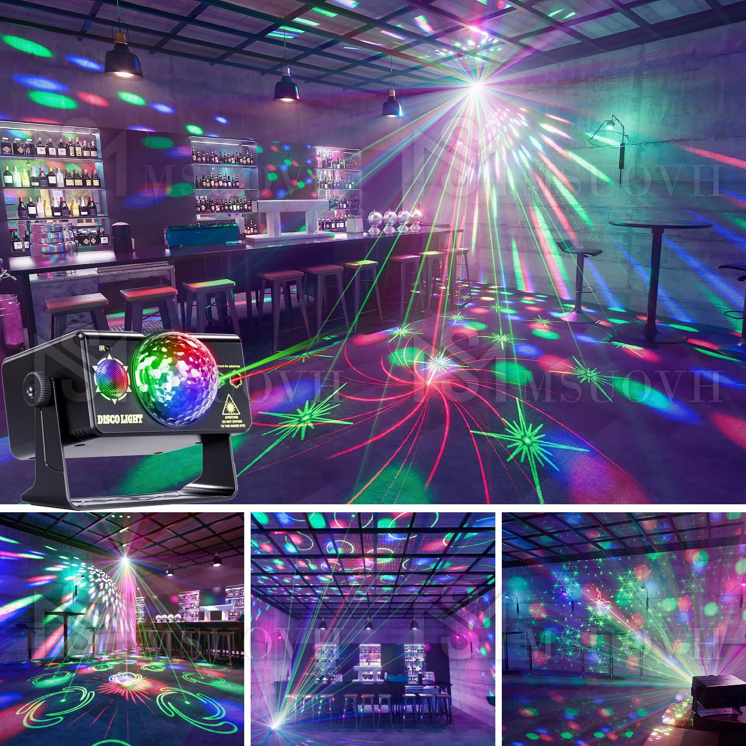 Party light with colorful disco ball lights and 3 beam combinations (red, green, and red & green). Such multi-effect combination to create a more wonderful atmosphere.