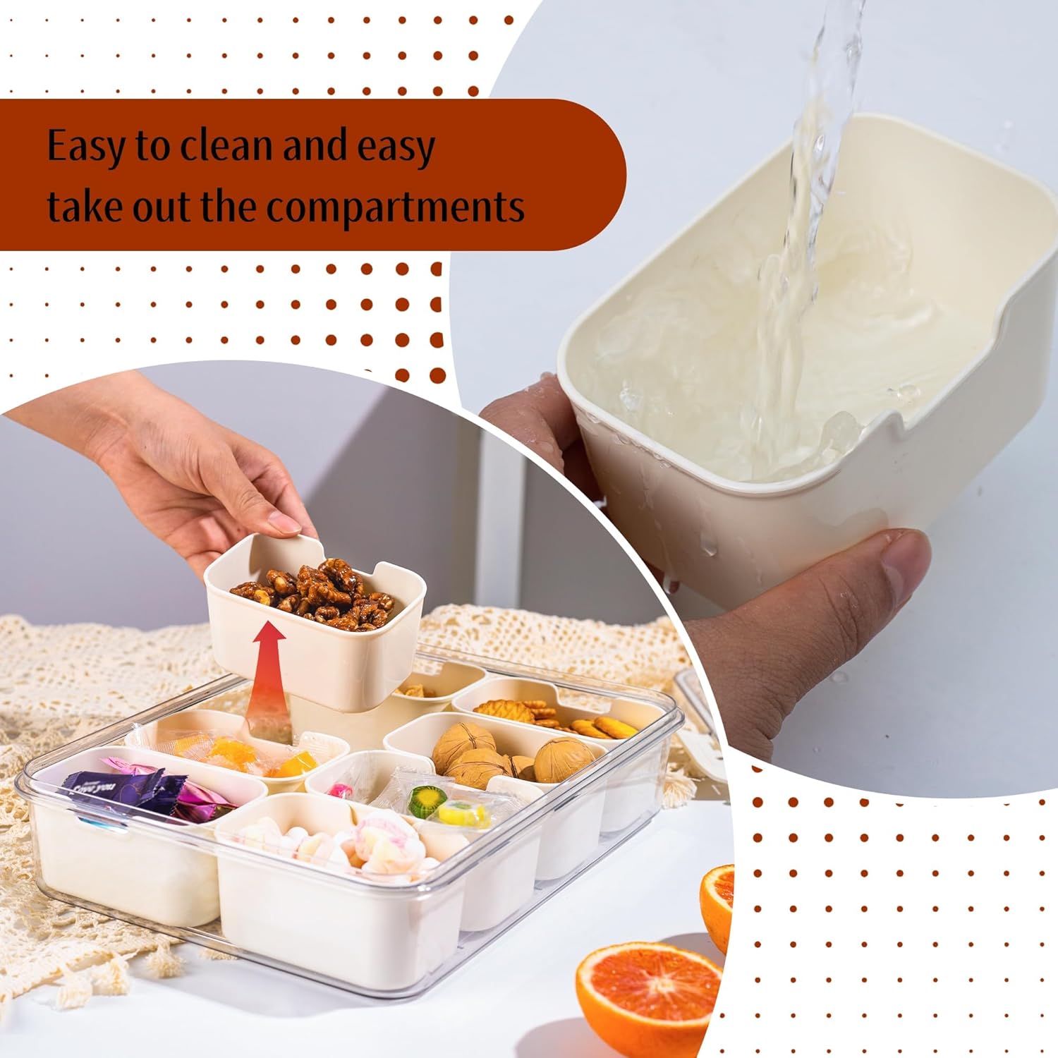 Divided Snack Serving Tray with Lid and Handle, Travel Snackle Box Charcuterie Container, Portable Storage Organizer for Candy, Fruits, Nuts, Snacks(2 Pack)