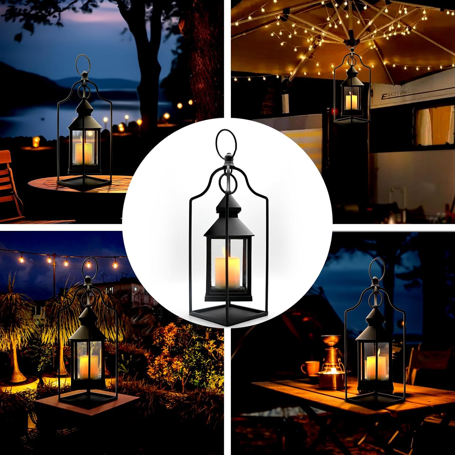🎇【Durable Material】High quality iron material and glass panel are durable and not easy to be damaged. The lantern has a closed design that is waterproof