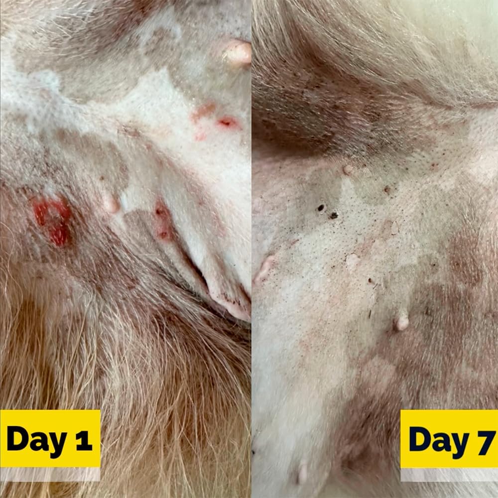 Monitor the affected area for improvement and continue using Puppy Lisa Skin Soother & Moisturizer as needed to keep your dog’s skin healthy and irritation-free.