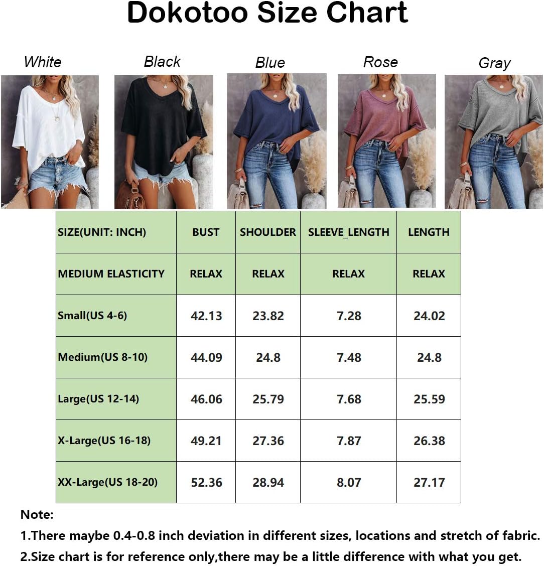 Dokotoo Women’s Causual V Neck Short Sleeve Waffle Knit Loose Tunic Tops Blouses