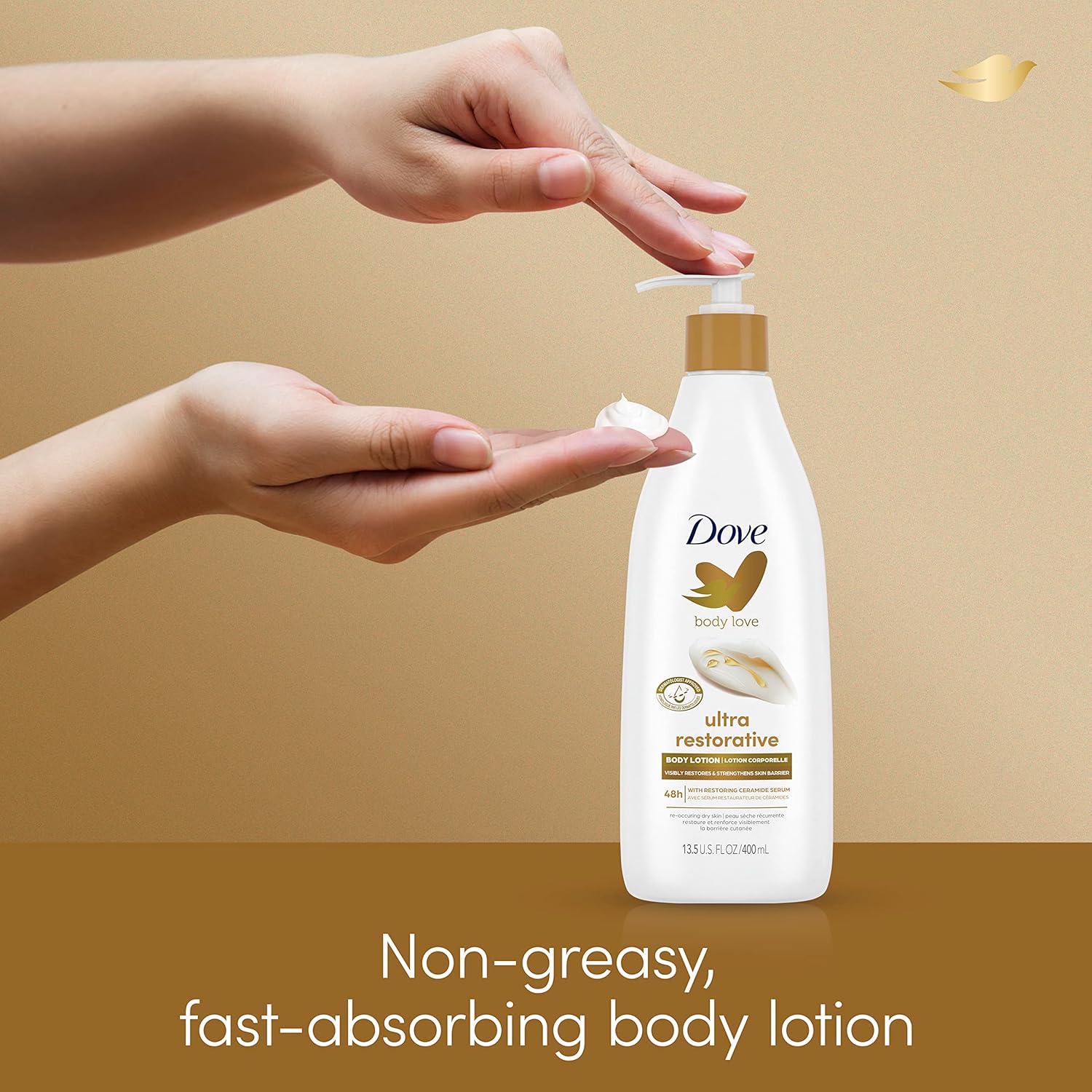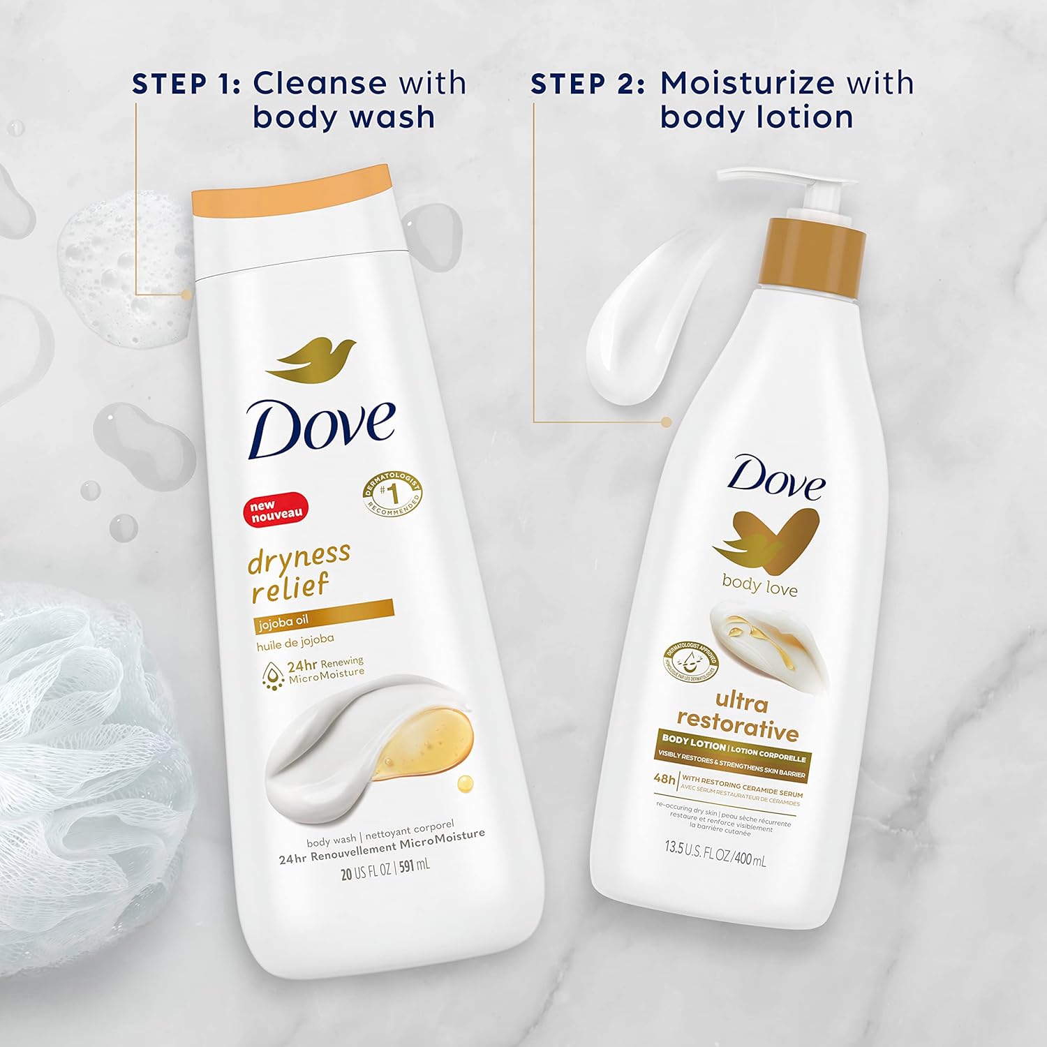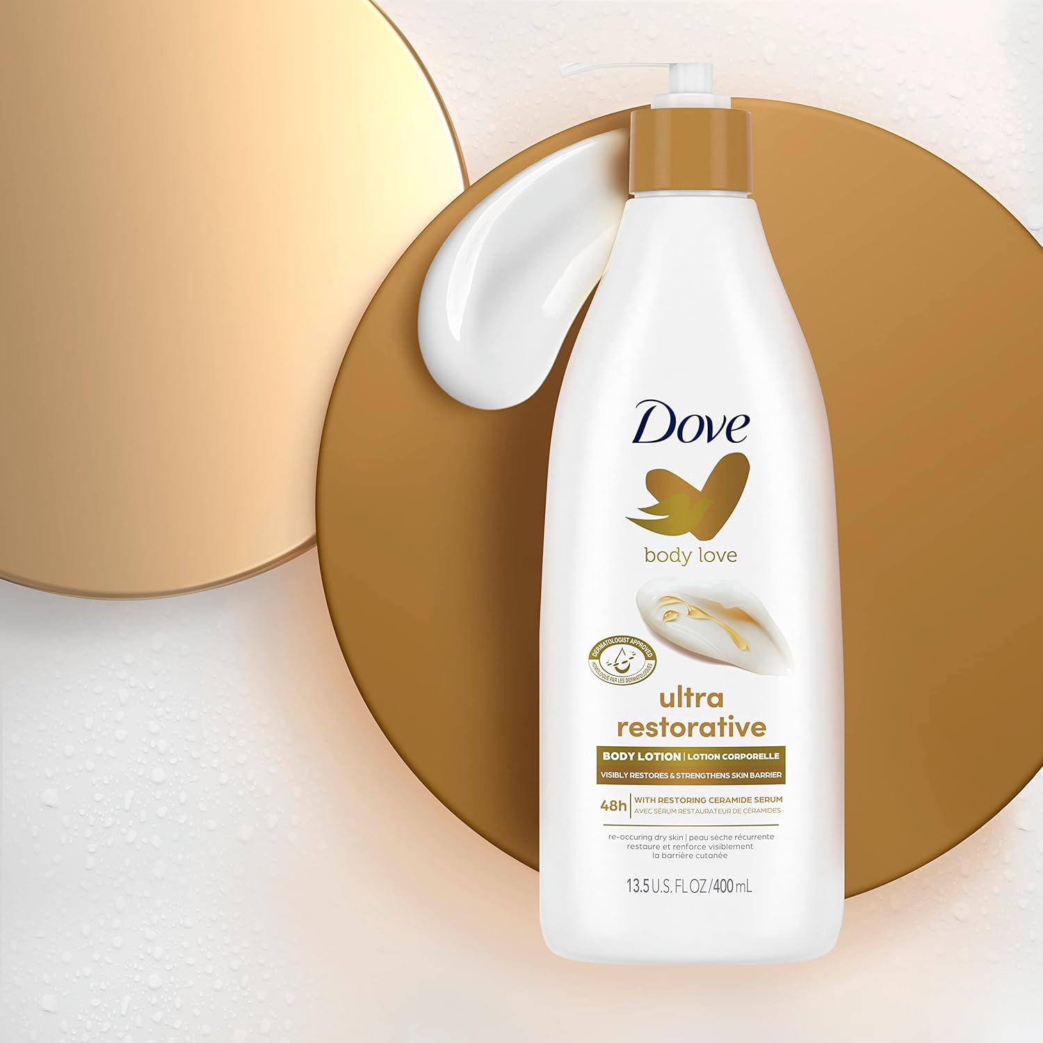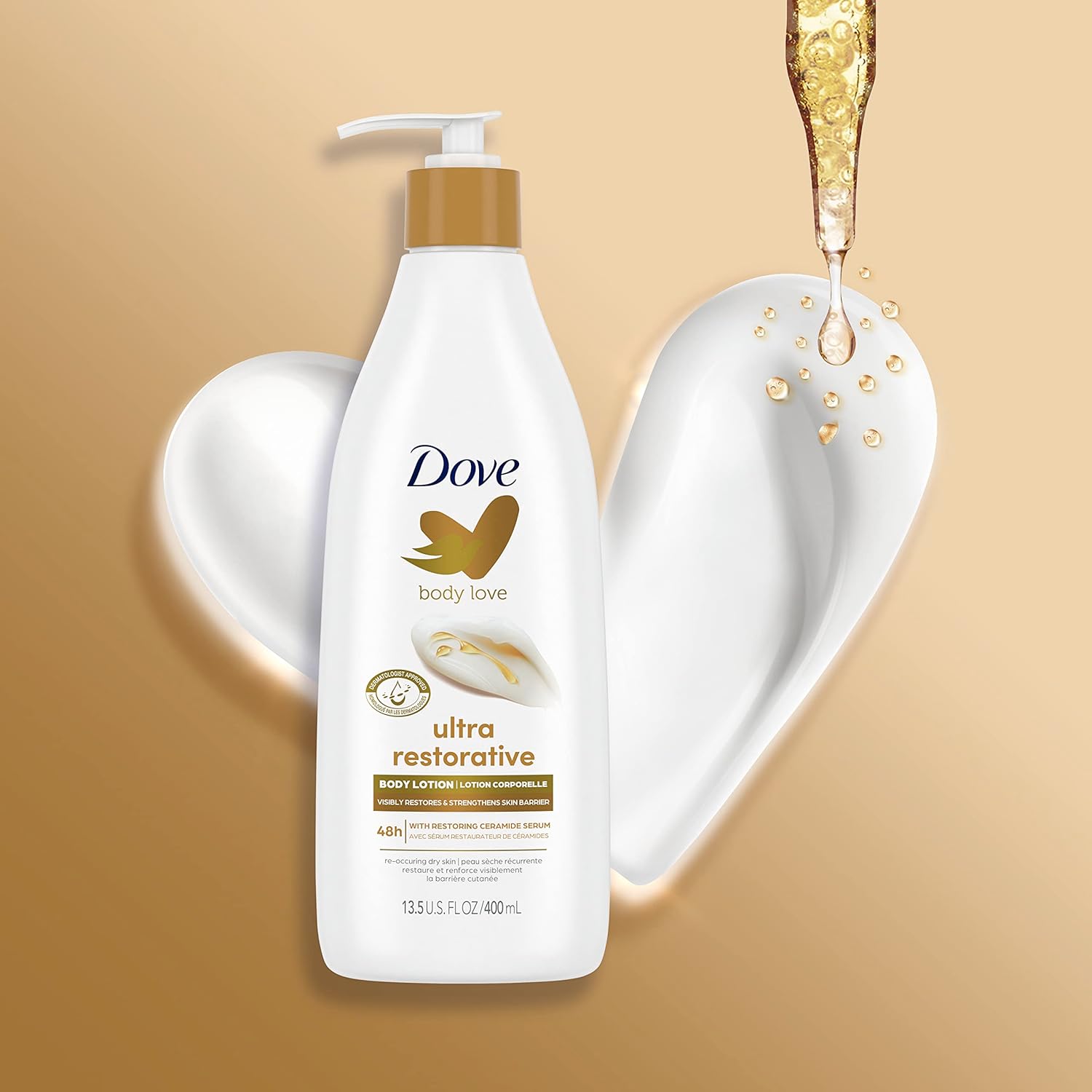 Dove believes in Body Love. That means caring for your body and showing it some love, no matter how you’re feeling about it. With the new Dove Body Love collection, our hand and body lotions combine care for your skin with self-care for you. With a fast-absorbing and non-greasy formula, Dove Body Love Restoring Care Body Lotion helps visibly improve dry skin and prevent the reoccurrence of dryness with each application for soft, smooth, and radiant skin that lasts. Our Restoring Ceramide Serum is a unique blend of ingredients designed to replenish ceramides with nutrients and strengthen the skin’s moisture barrier. This fragrance-free, fast-absorbing, non-greasy, and paraben-free moisturizer is also dermatologist-approved, providing long-lasting care for very dry skin. This skin care for very dry skin is dermatologist approved, suitable for every day, and perfect for everyone. So show your body some love with this rich and creamy formula that retains 9X more moisture than untreated skin, which beautifully nourishes dry skin and provides long-lasting, +48-hour moisturization – for skin that feels restored and soft. For an indulgent treat, simply massage this body cream for dry skin, paying special attention to areas of dry skin.