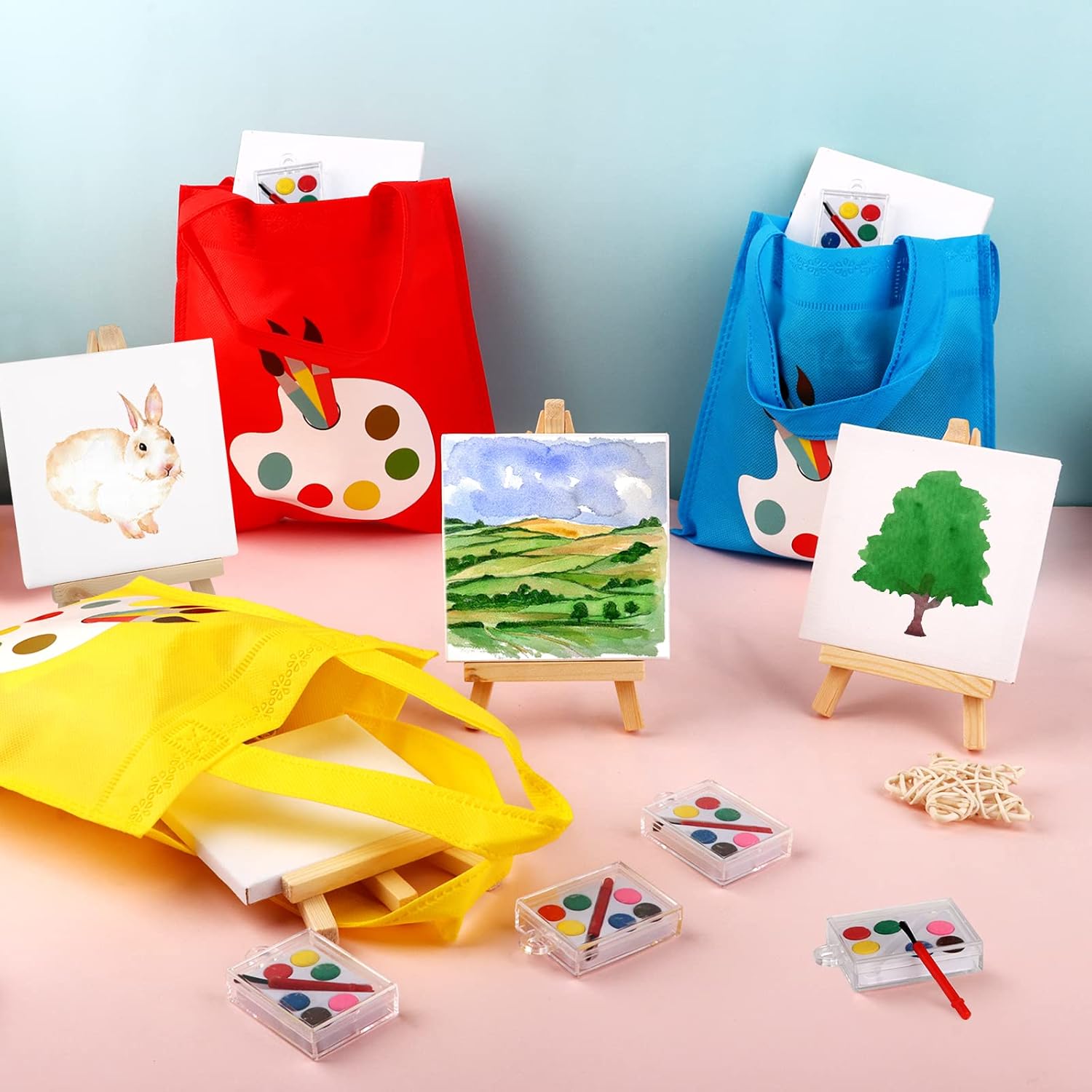 DreamdaMoonnly 48pcs Watercolor Painting Supplies Mini Painting Kit – Mini Paint Set Canvas with Easel Tote Bags Aprons – Kids Painting Set Art Party Favors for Kids Birthday