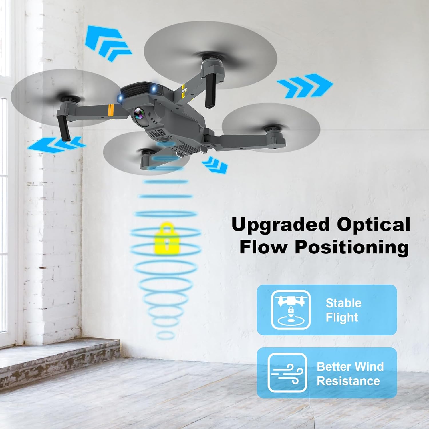 User-Friendly Flight Control: Whether you are a beginner or an experienced user, our drone makes it easy for you to fly. One-button take-off and altitude fixation functions make flight operations a breeze. The upgraded hovering system and optical flow positioning technology ensure drone flight is more stable and easy to control. The headless mode and adjustable 3-speed function provide convenient direction and speed control, making flying more flexible.