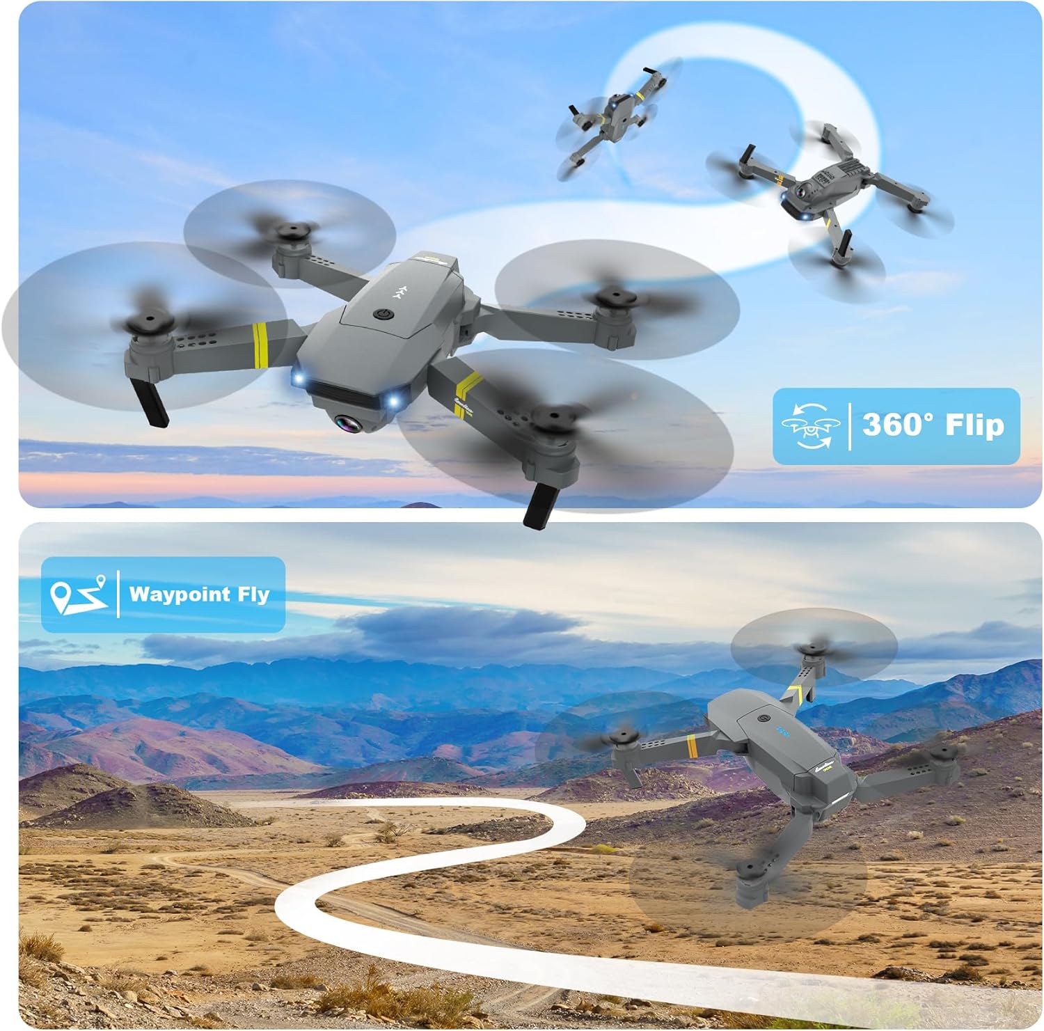 Multiple functions for interesting flight: Gesture selfie, Waypoint flight, 3D flip, 3 speeds, headless mode, and one-button takeoff/landing, you can take selfies by posture or perform thrilling stunt flights. Whether you’re a beginner or a skilled player, our drone promises an enjoyable flying adventure.