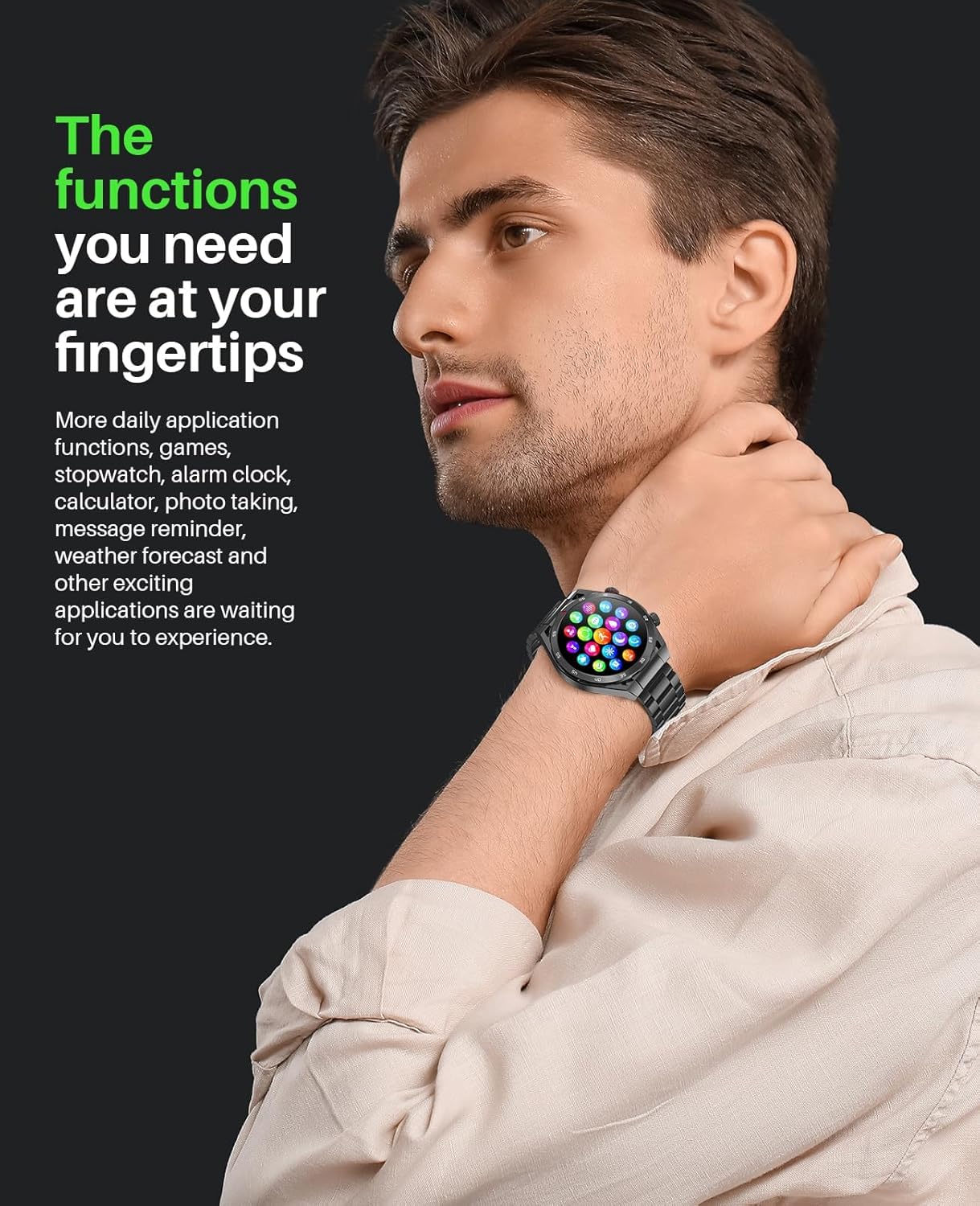 🎁【Ultimate Convenience and Connectivity】-Seamlessly integrate your communication and daily tasks into your wristwear. Make and receive calls with Bluetooth calling, ensuring you’re always connected. Receive notifications from social media platforms, stay updated without needing your phone. Control your music playback and capture photos with a simple wrist gesture. Stay ahead of your day with weather updates, set alarms, and even use the calculator. This watch ensures unmatched convenience and connectivity.