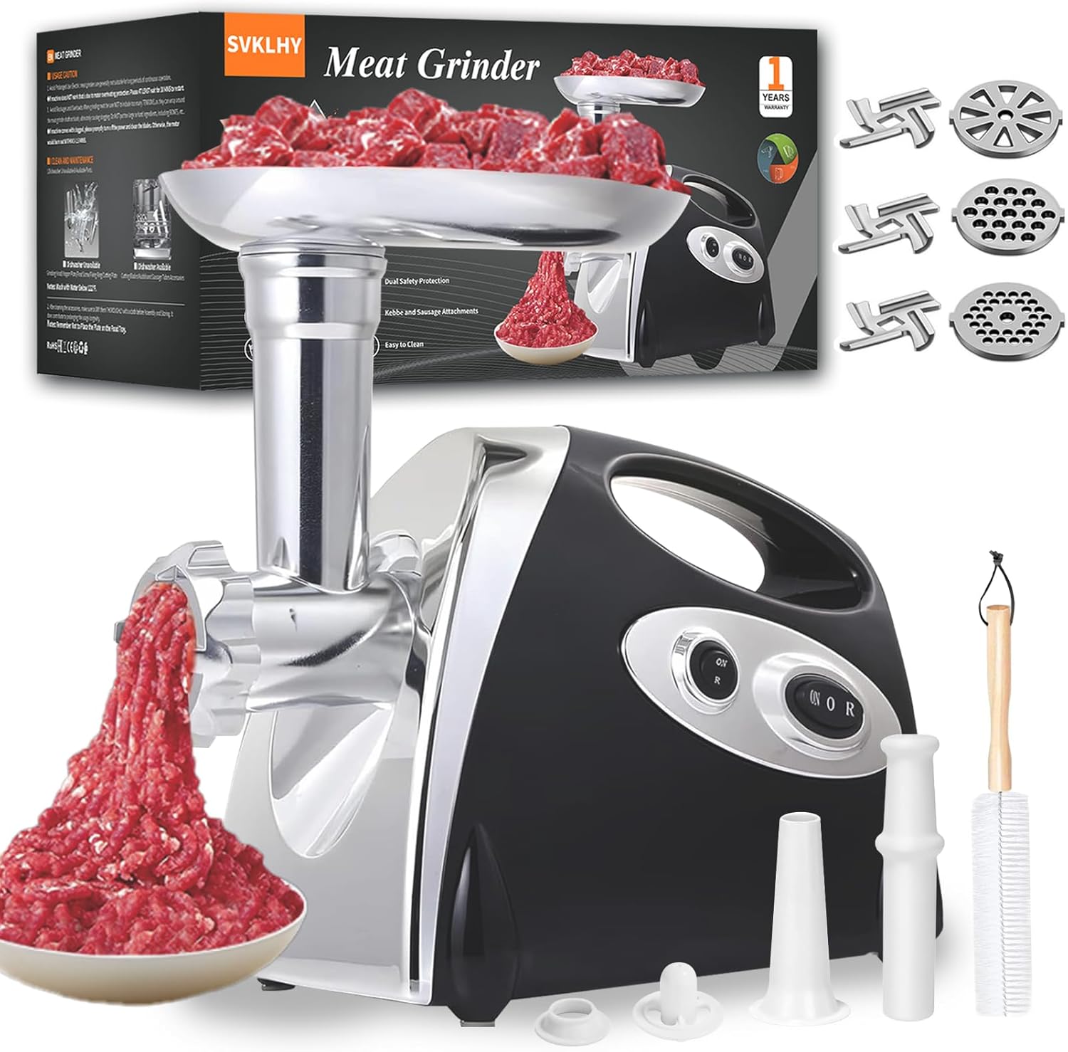【SUPERIOR POWERFUL&UPGRADED MOTOR】NOTES: BE SURE NOT TO INCLUDE TOO MANY TENDONS. SVKLHY electric meat grinder features a robust motor (3000W MAX, 20% More Powerful), enabling you to quickly grind large quantities of meat. Its high efficiency saves you time and effort, making it an indispensable tool for home cooks and professional chefs alike. Ideal for beef, chicken, pork, fish, and more, this versatile meat grinder is a must-have for any kitchen.
