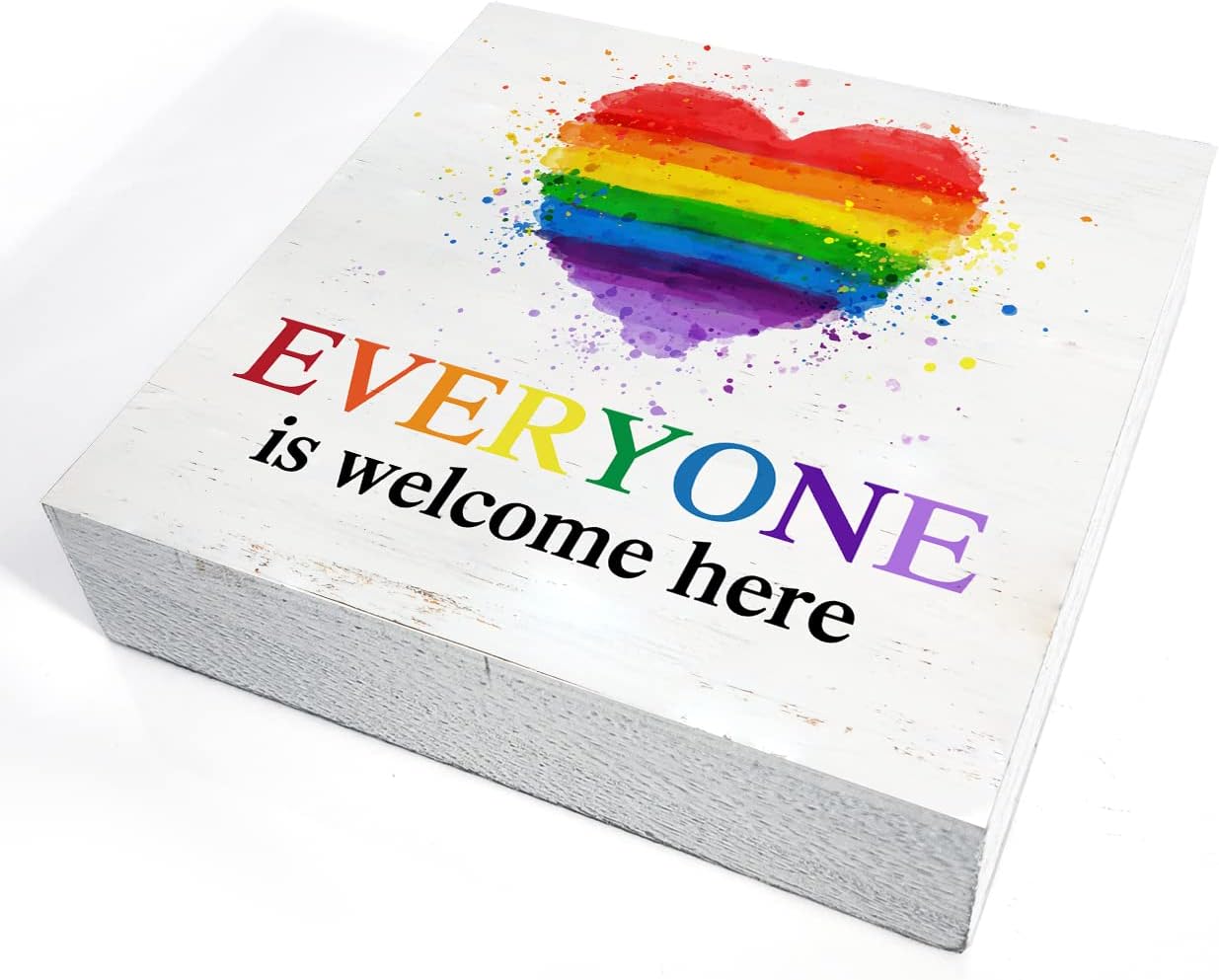 Everyone is Welcome Here Equality Wooden Box Sign Desk Decor 5 x 5 Inch Diversity Box Sign Wood Plaque Block Sign Home Office Classroom Decor