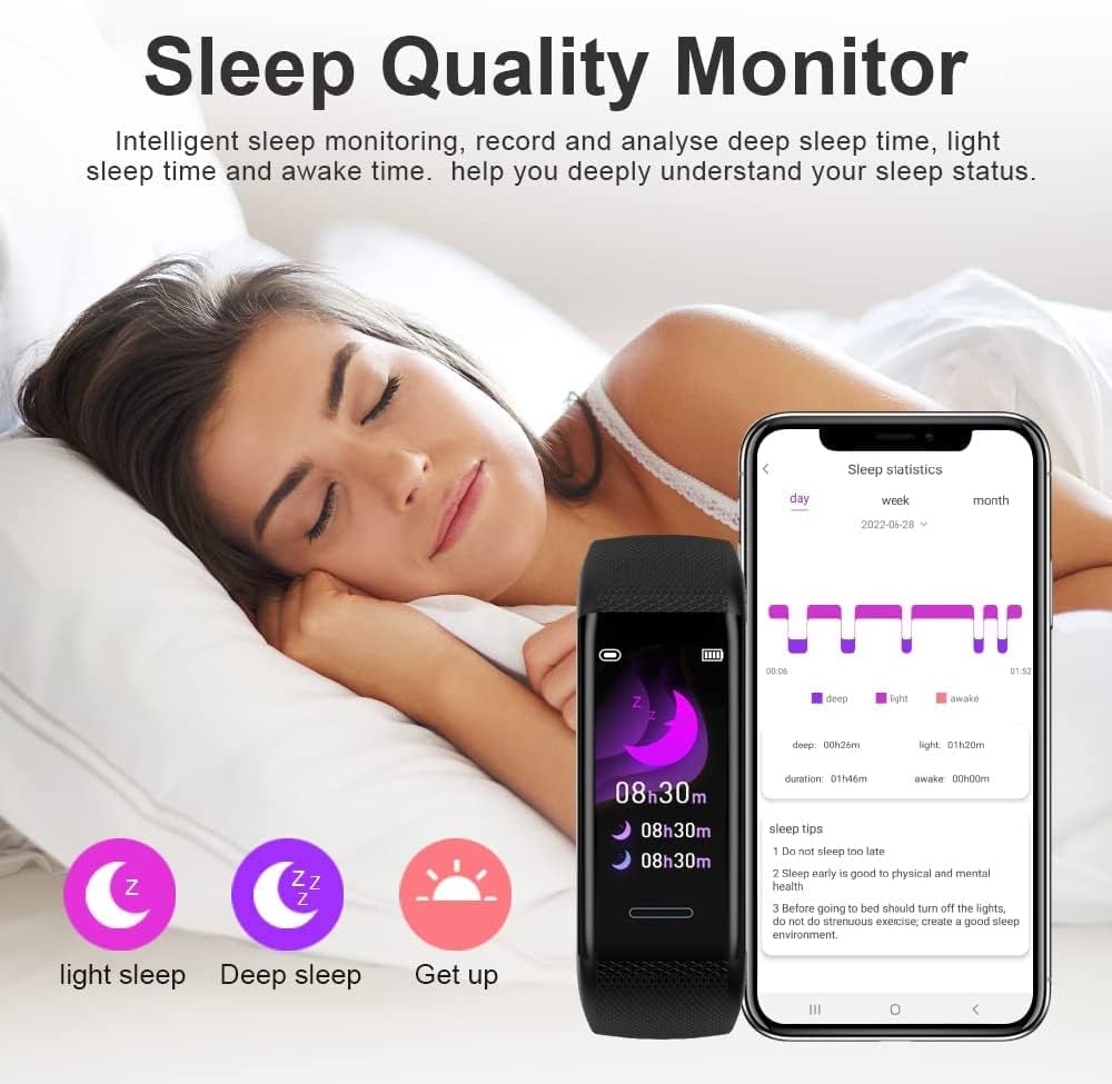 【Sleep Tracker and Female menstrual records】Accurately record sleep quality (deep sleep, light sleep and wake time, as well as fall asleep time and wake time). You can view detailed sleep data in the READsport app. Intelligent prediction reminds girls of their menstrual period in time. It is a personal health housekeeper for girls. It records, predicts, and reminds menstrual times, helps you develop good living habits, and lets you know your physiological status at any time.