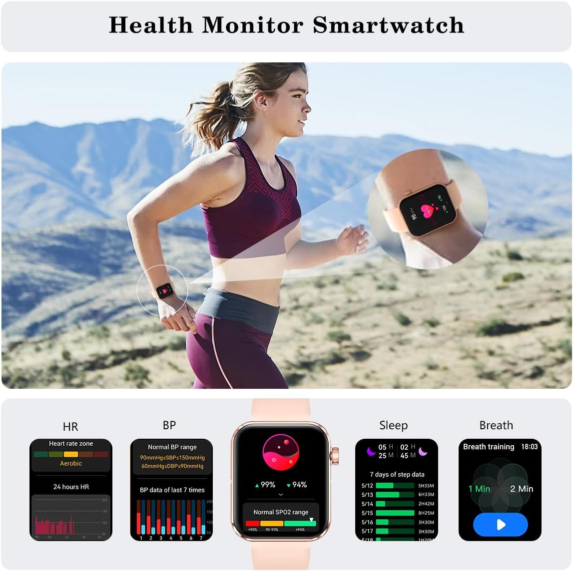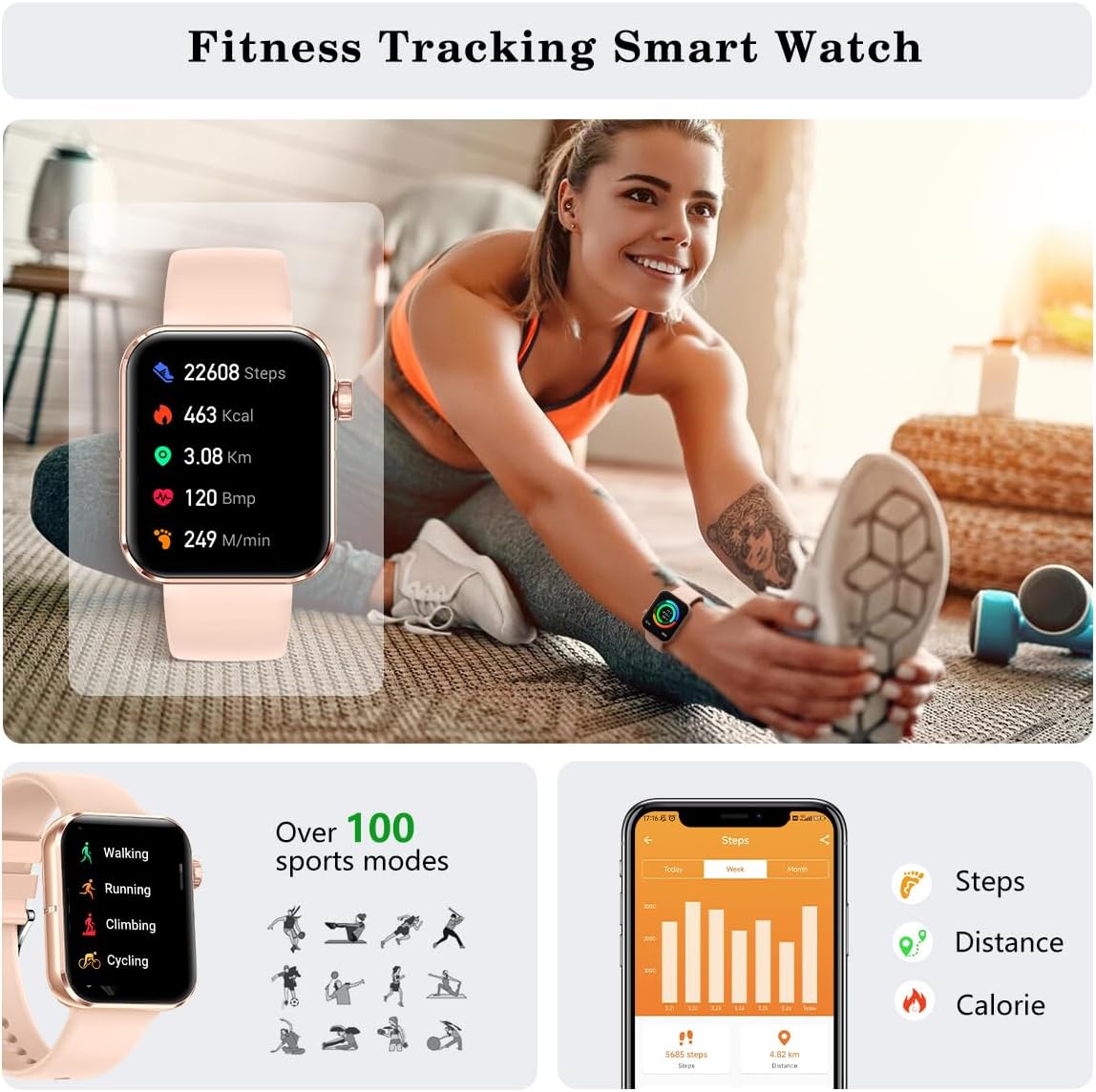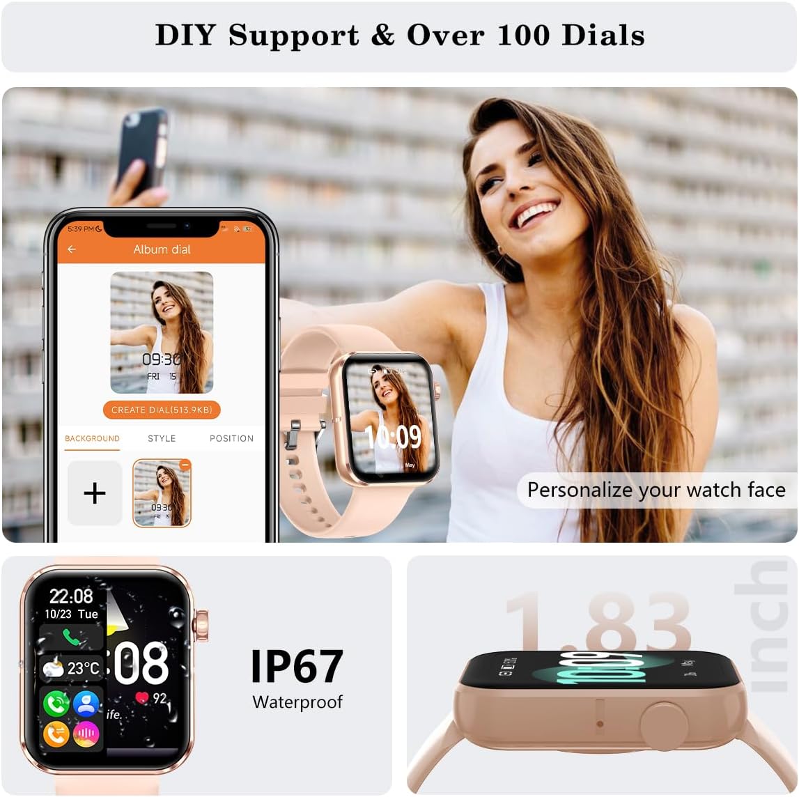 FITVII Smart Watch Answer/Make Call, 1.83″ Fitness Activity Tracker with Heart Rate Blood Pressure and Blood Oxygen, Sleep Monitor Voice Assitant 100 Sports Smartwatch for Women Android iOS