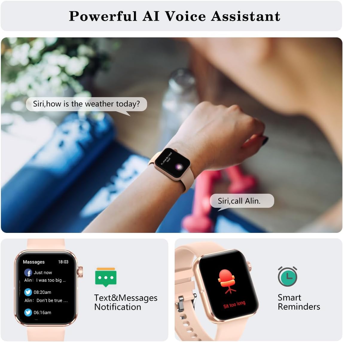 FITVII Smart Watch Answer/Make Call, 1.83″ Fitness Activity Tracker with Heart Rate Blood Pressure and Blood Oxygen, Sleep Monitor Voice Assitant 100 Sports Smartwatch for Women Android iOS
