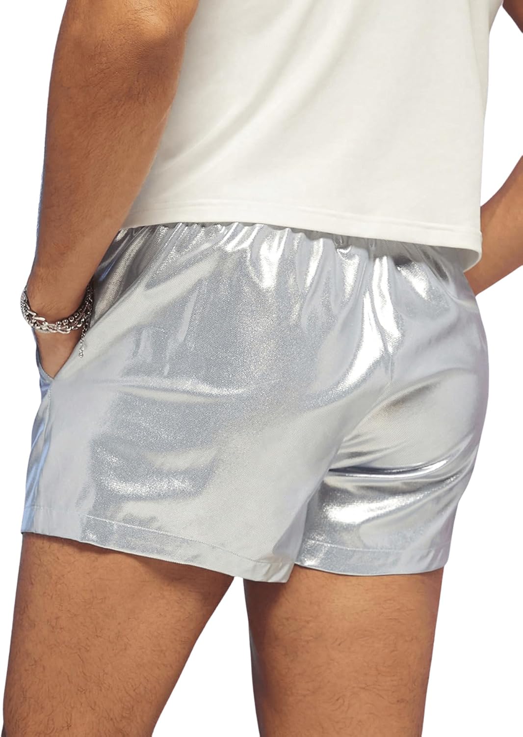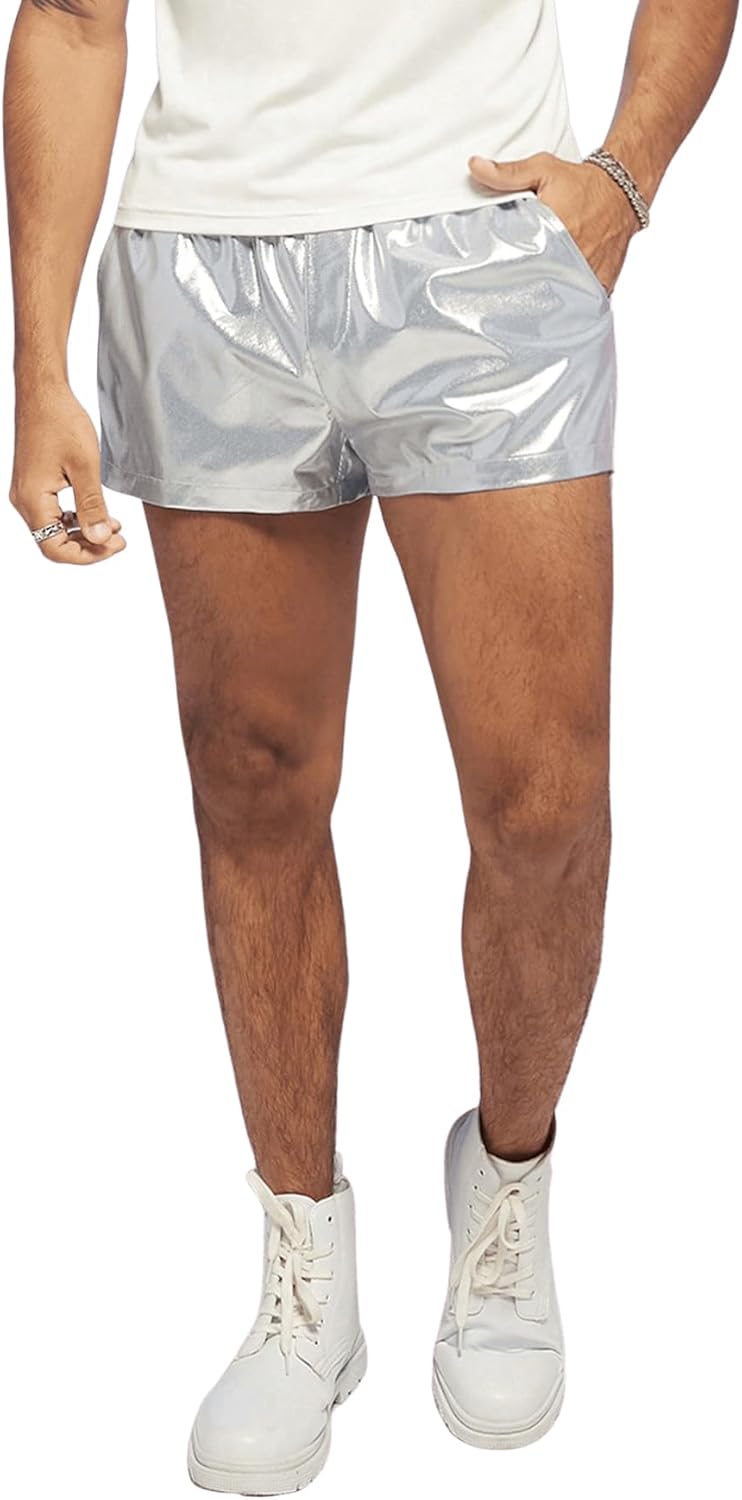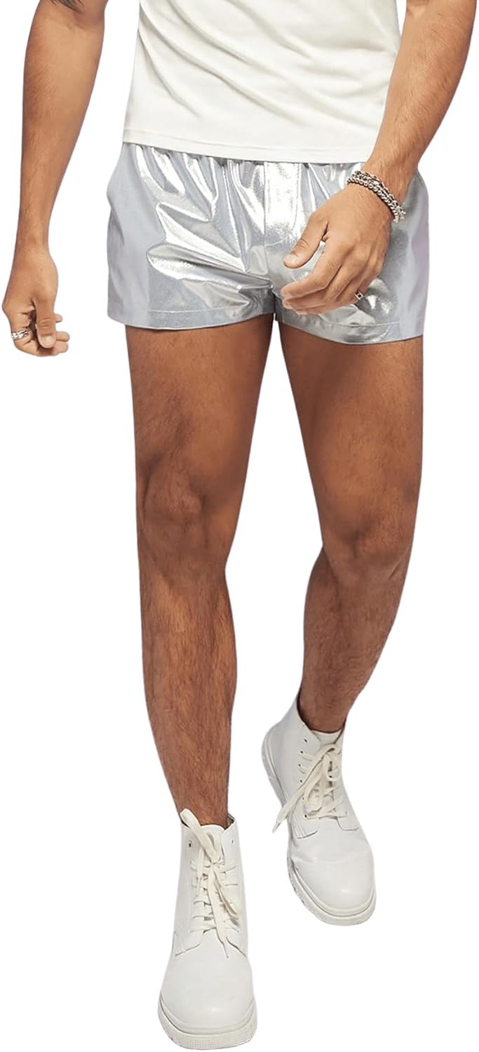 Floerns Men’s PU Leather Slant Pocket Shorts Straight Leg Clubwear Shorts