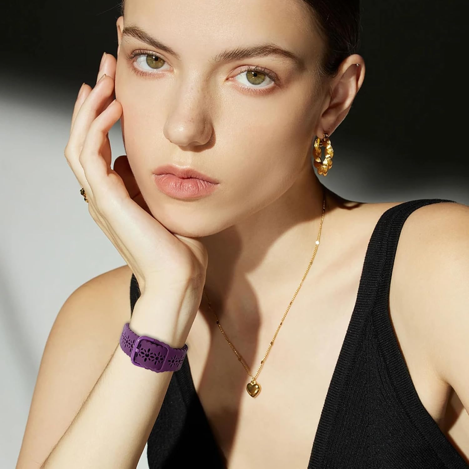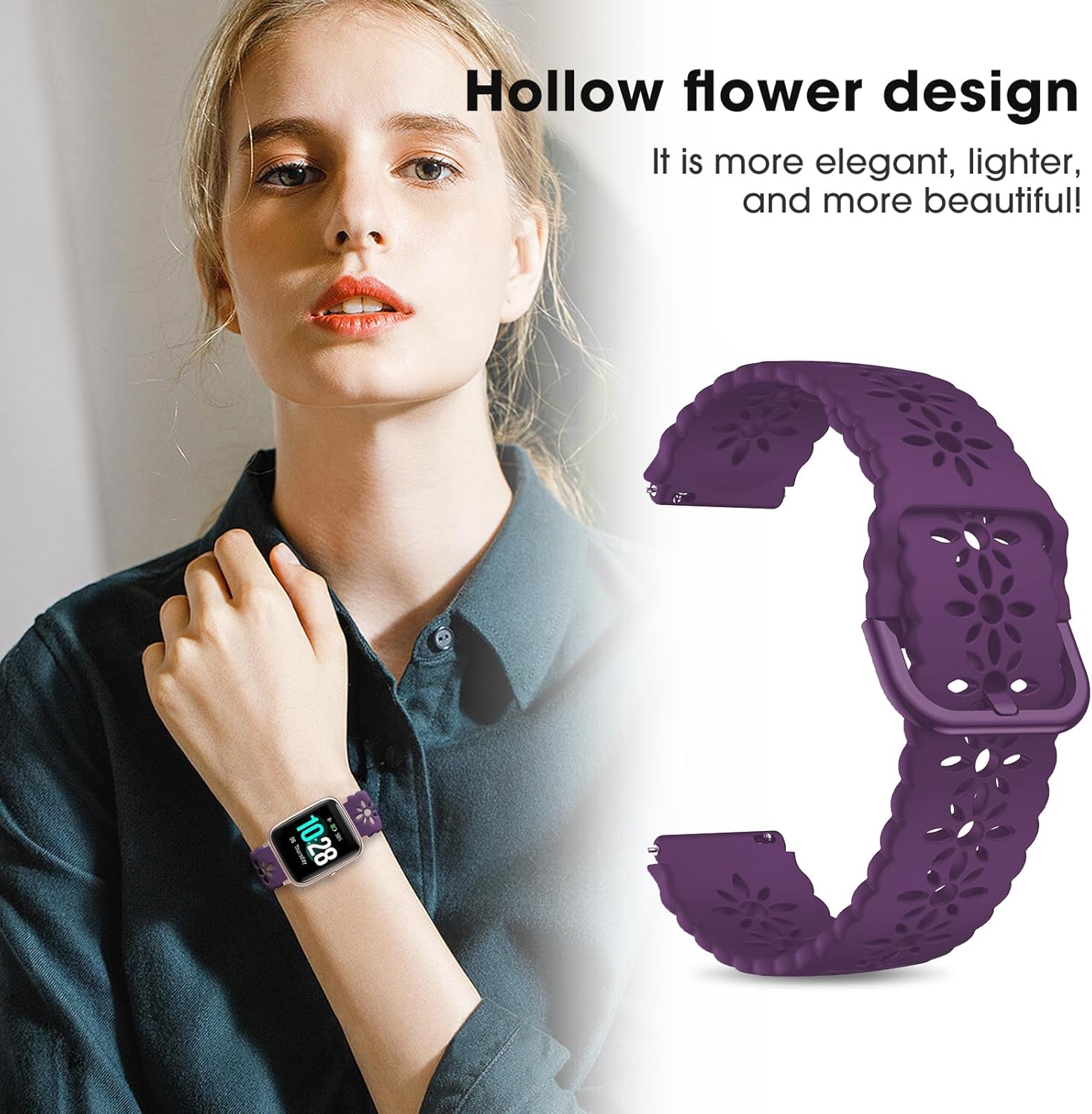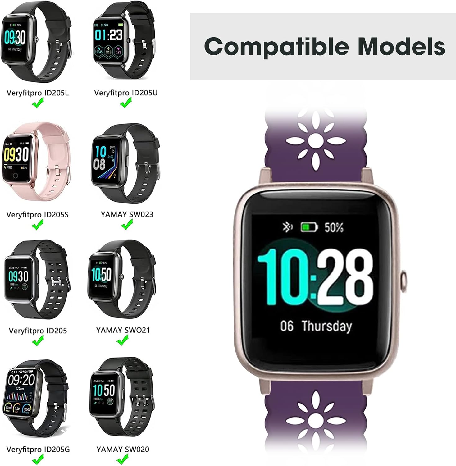 Floral Silicone Band Compatible with Veryfitpro Watch Band Replacement, Slim Hollow-out Wristbands Sport Bands for ID205, ID205L, ID205U, ID205S, ID205G, ID215G, ID216, SW020, SW021, SW023, YM020,