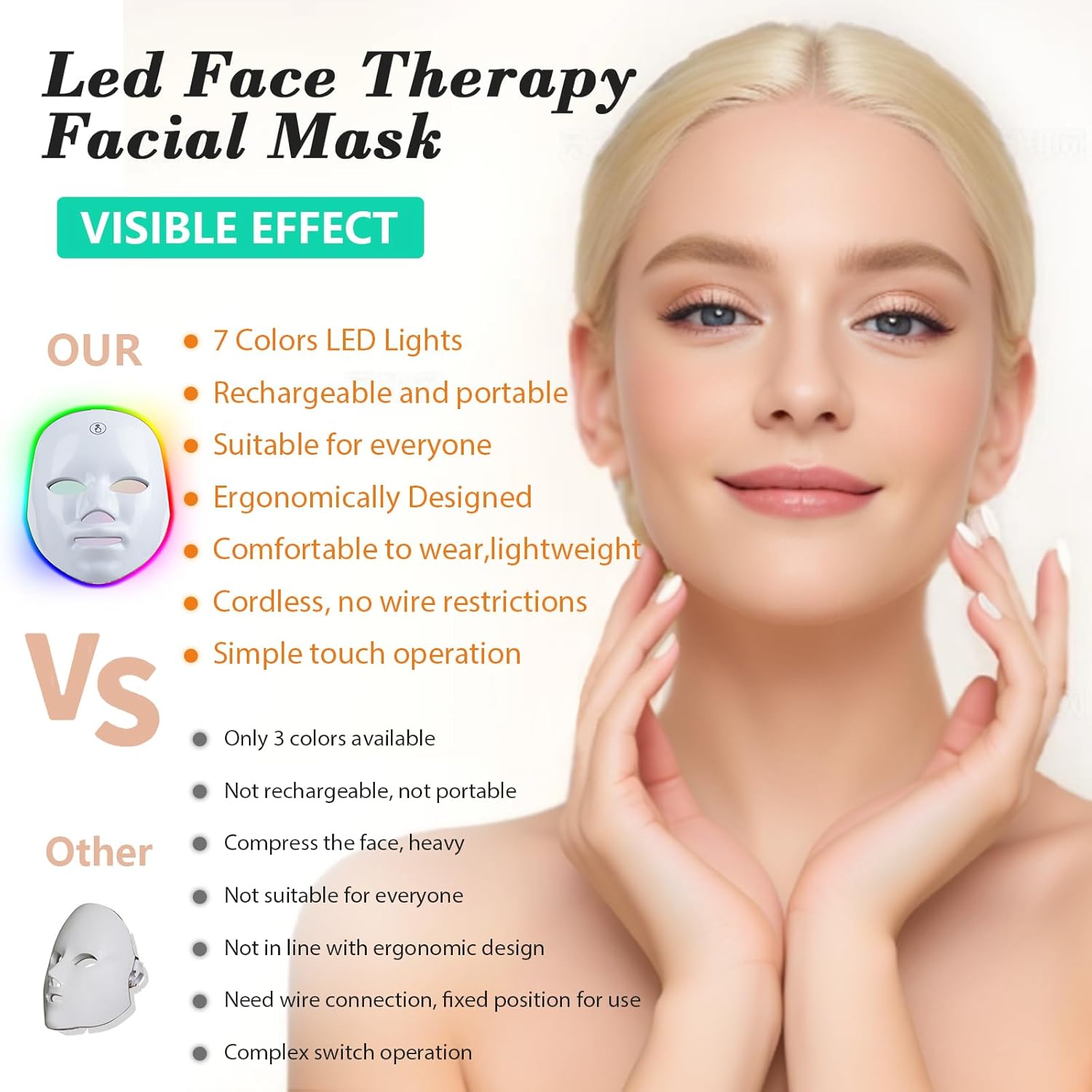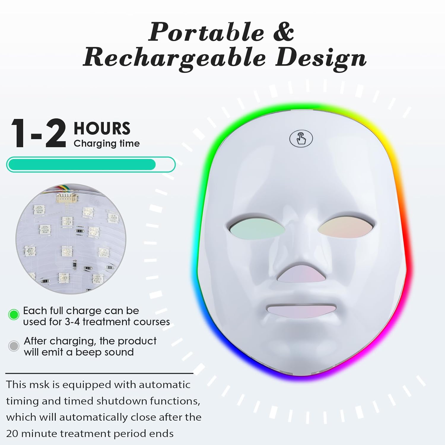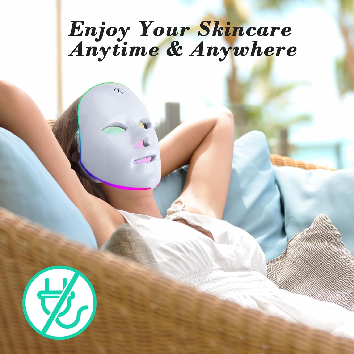 FM-01 Blue & Red Face Màsk Light Theràpy: 7-Color LED Theràpy, Rechargeable & Portable Facial Skincare Màsk for Travel and Home Use