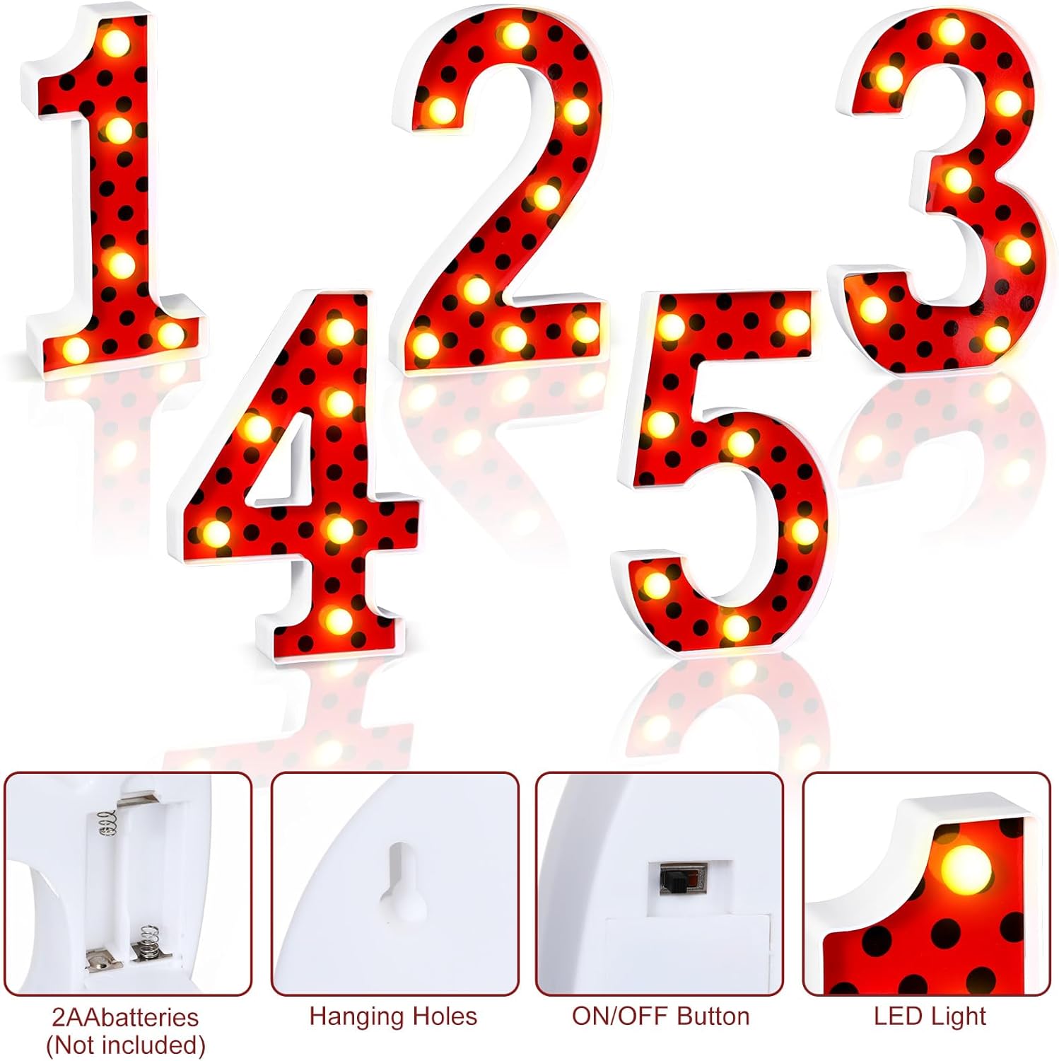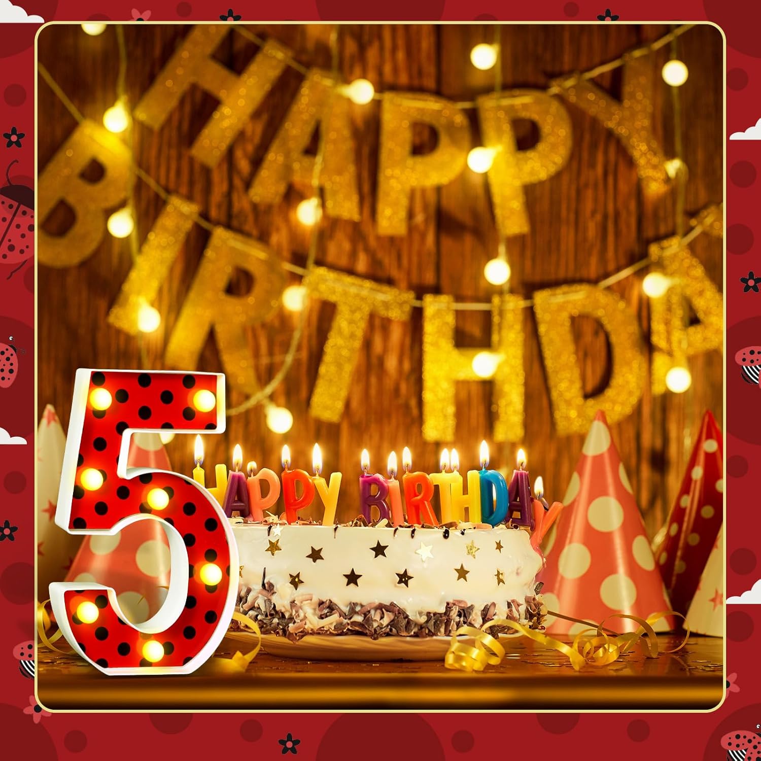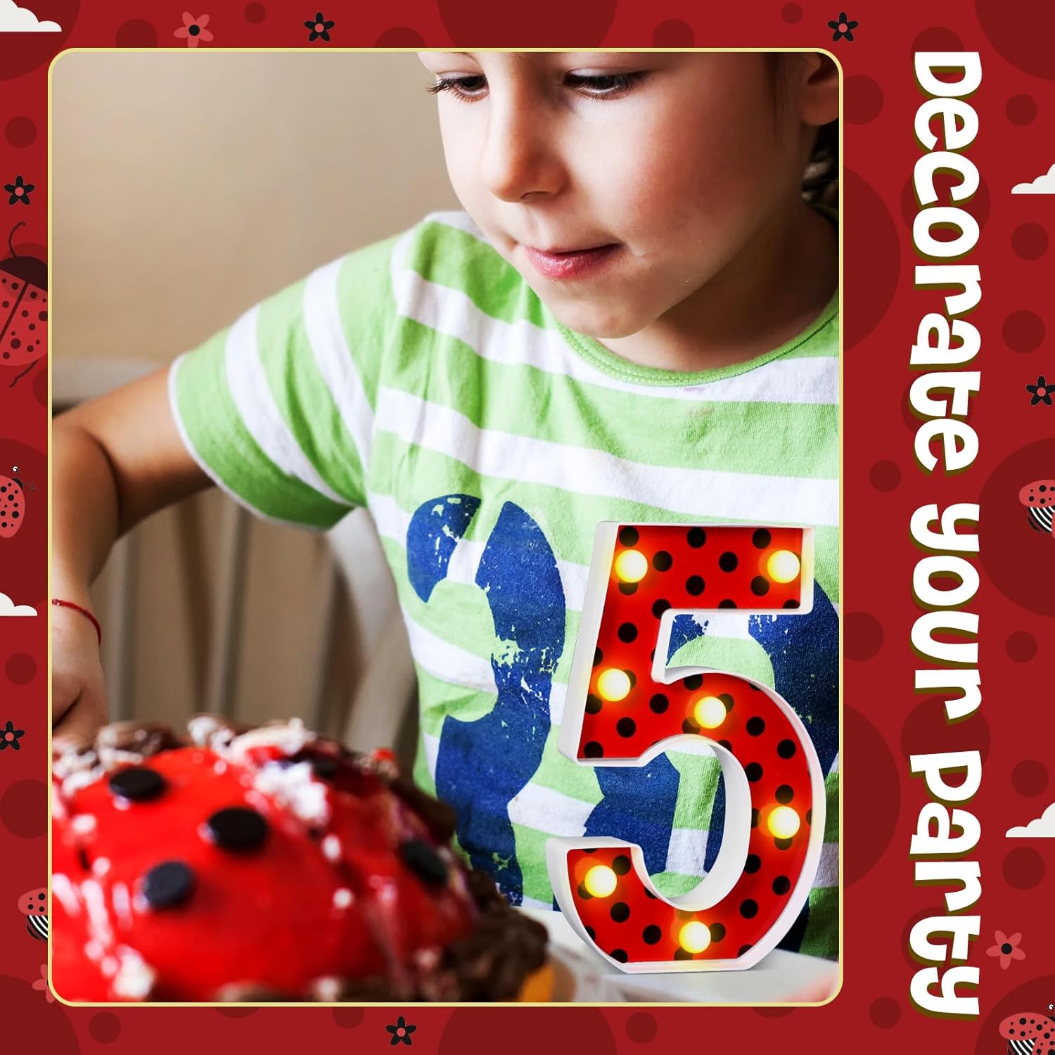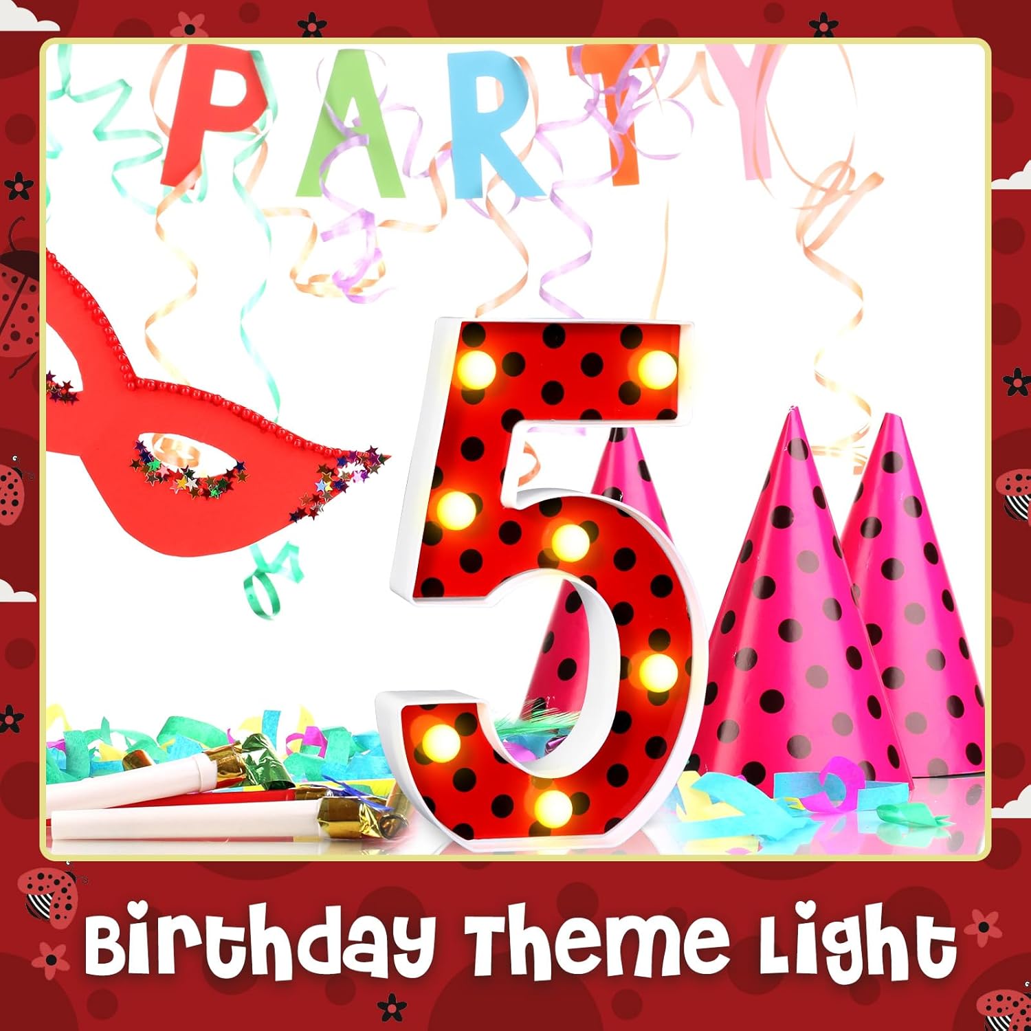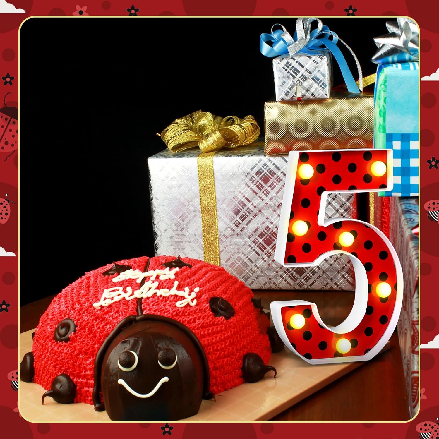 Havawish Ladybug Birthday Party Decoration Decorative LED Numbers Ladybug Theme Red Black Polka Dot Marquee Digital Lights for Ladybug Theme Party Supplies Birthday Party Table Centerpieces(5)