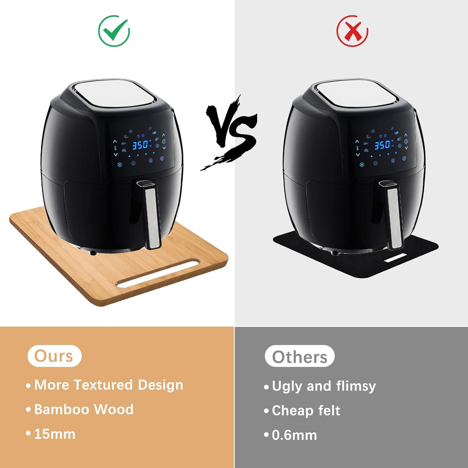 【Premium Bamboo Wood Material】The heat resistant mat for air fryer made of environmentally friendly bamboo material, an elegant look to complement any kitchen, more serviceable and won’t warp or crack other than cheap flimsy itchy unsafe felt fiber glass material.