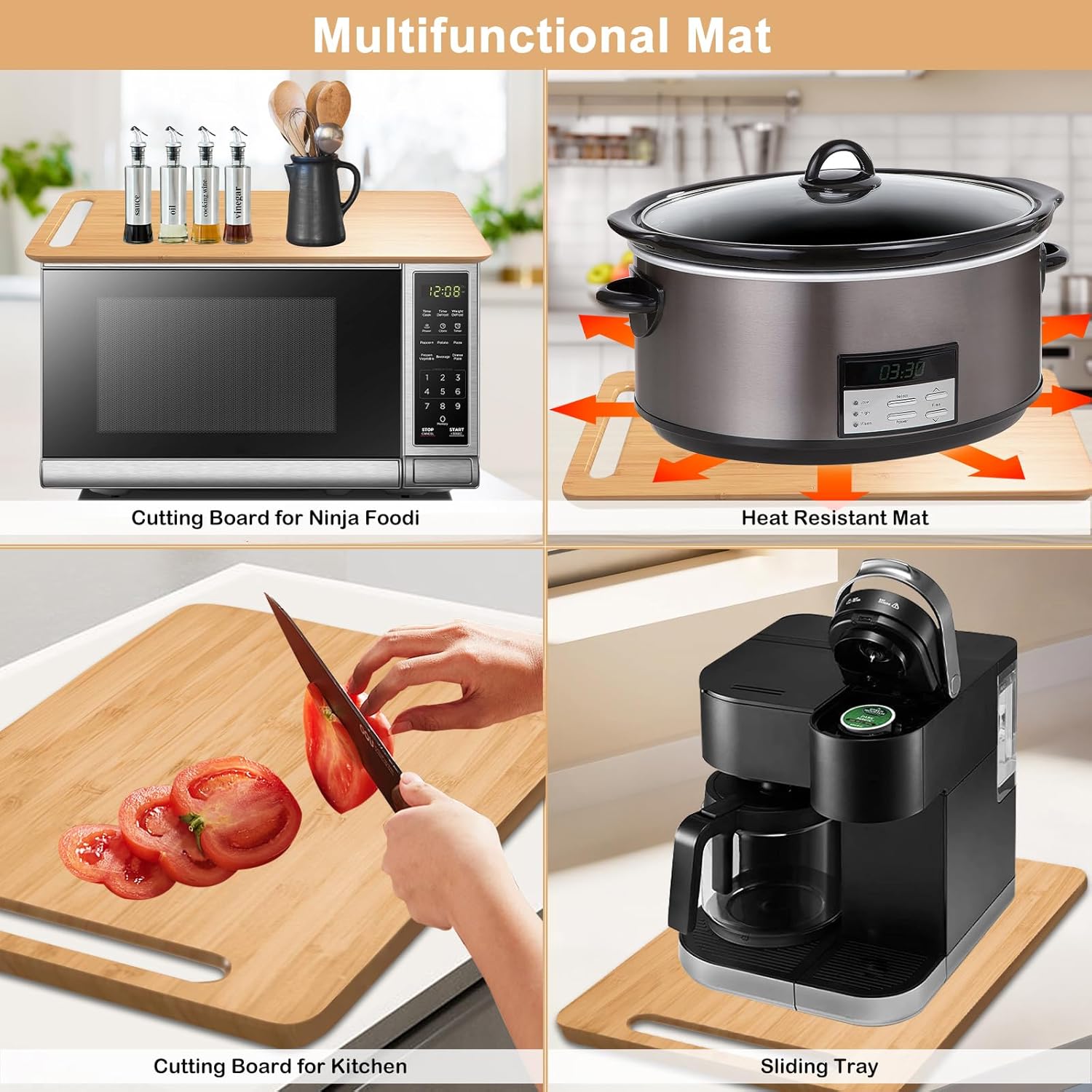 【Widely Used】Our heat resistant mats for countertops can be used for many situations, not only can it be used as a heat resistant mat, but also as a sliding tray for coffee maker, cutting board for Ninja Foodi, cutting board for Kitchen; wide compatibility for coffee maker, oven, microwave, stand mixer, toaster, juicer, instant pot, crockpots, and more.