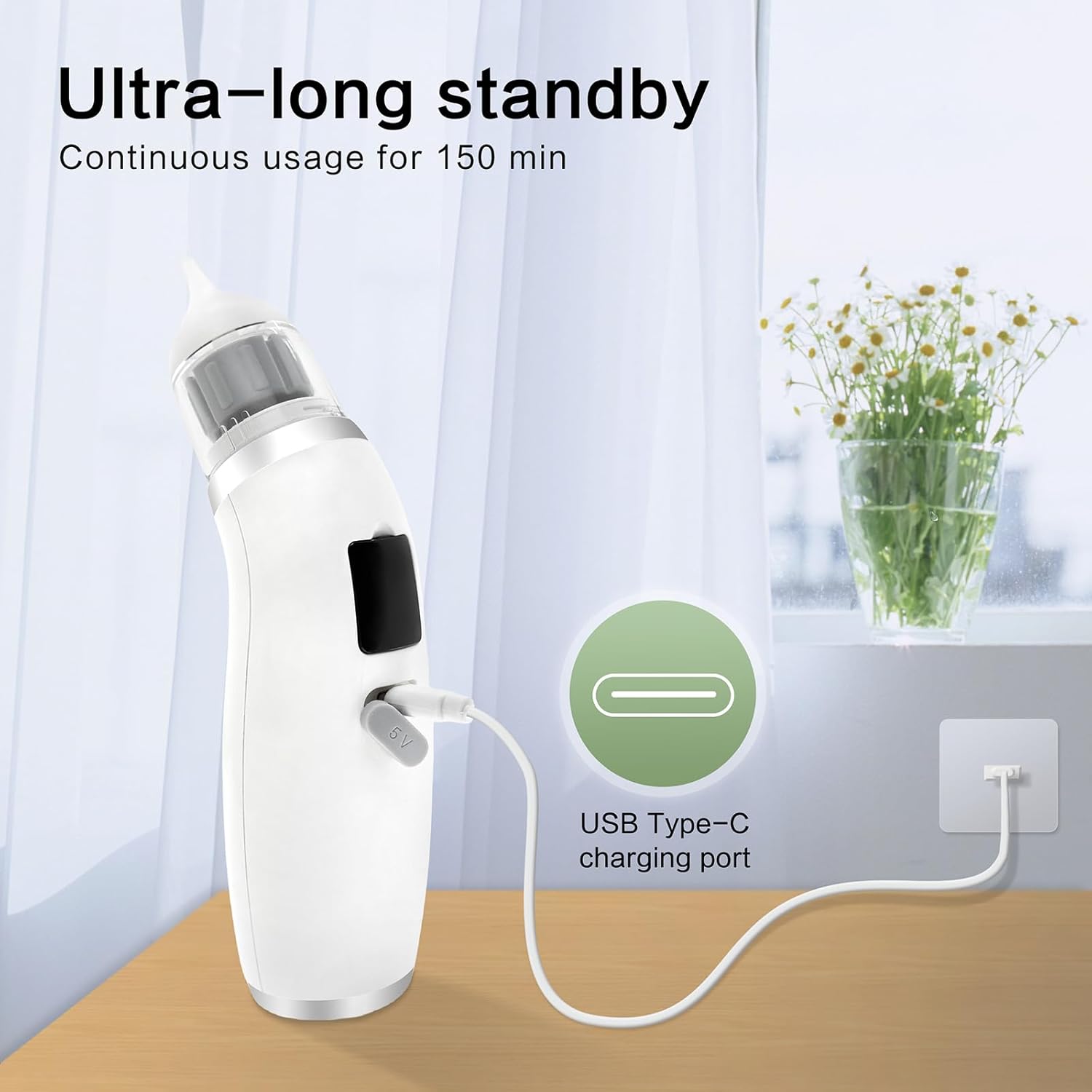 Quick Absorption: The baby nose aspirator provides a high flow rate of 5L/min, double that of other baby nose suctions, and comes with a 3mm large aperture nozzle. This ensures fast and efficient mucus removal without blockages, swiftly relieving baby nasal congestion.