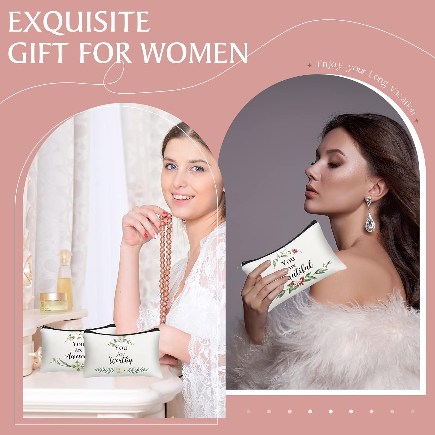 Printed with Inspiration Words: the floral makeup bag is designed with many inspirational words, such as [you are amazing], [you are loved], [you are kind] and more, which will remind you that you are such a good person when you see these words