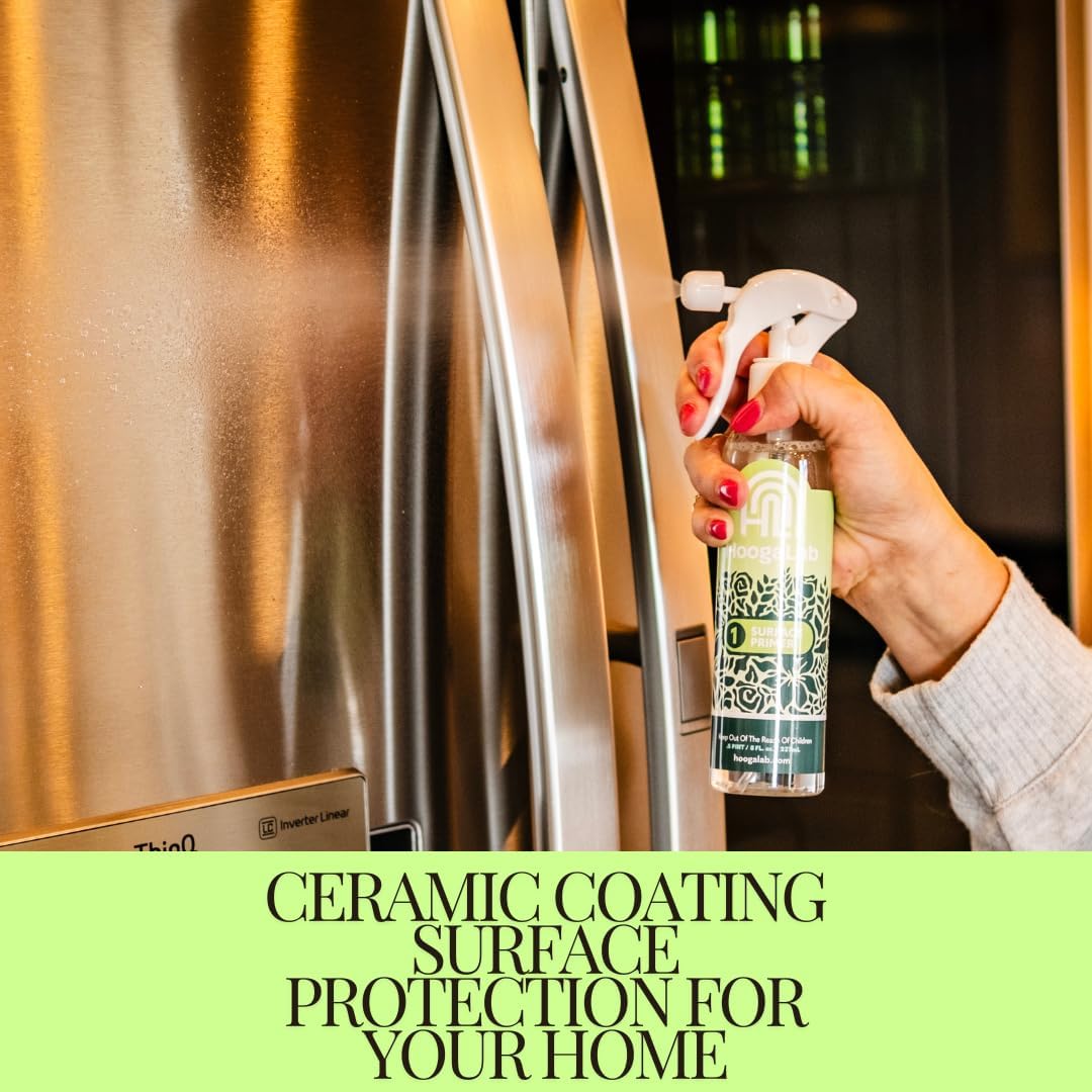 Safe for use on all surfaces, including granite counters, stainless steel appliances, marble, ceramic, glass, metal, tile, porcelain, stone, painted cabinets, and more, Hoogalab’s Home Ceramic Coating offers versatile protection for every corner of your home. Whether it’s your kitchen countertops, stainless steel appliances, or shower doors, our ceramic coating spray is the ideal solution.