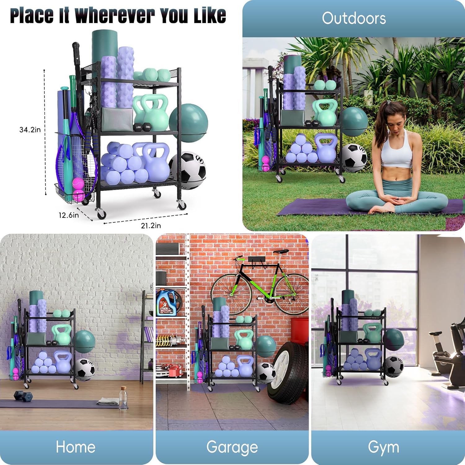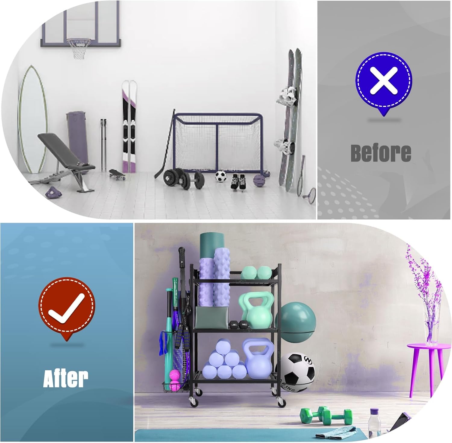 Multi-Functional Storage: A universal sports gear holder, this compact gym equipment storage is perfect for dumbbells, yoga mats, basketballs, and more, making it a versatile and efficient fitness equipment organizer for your home gym.