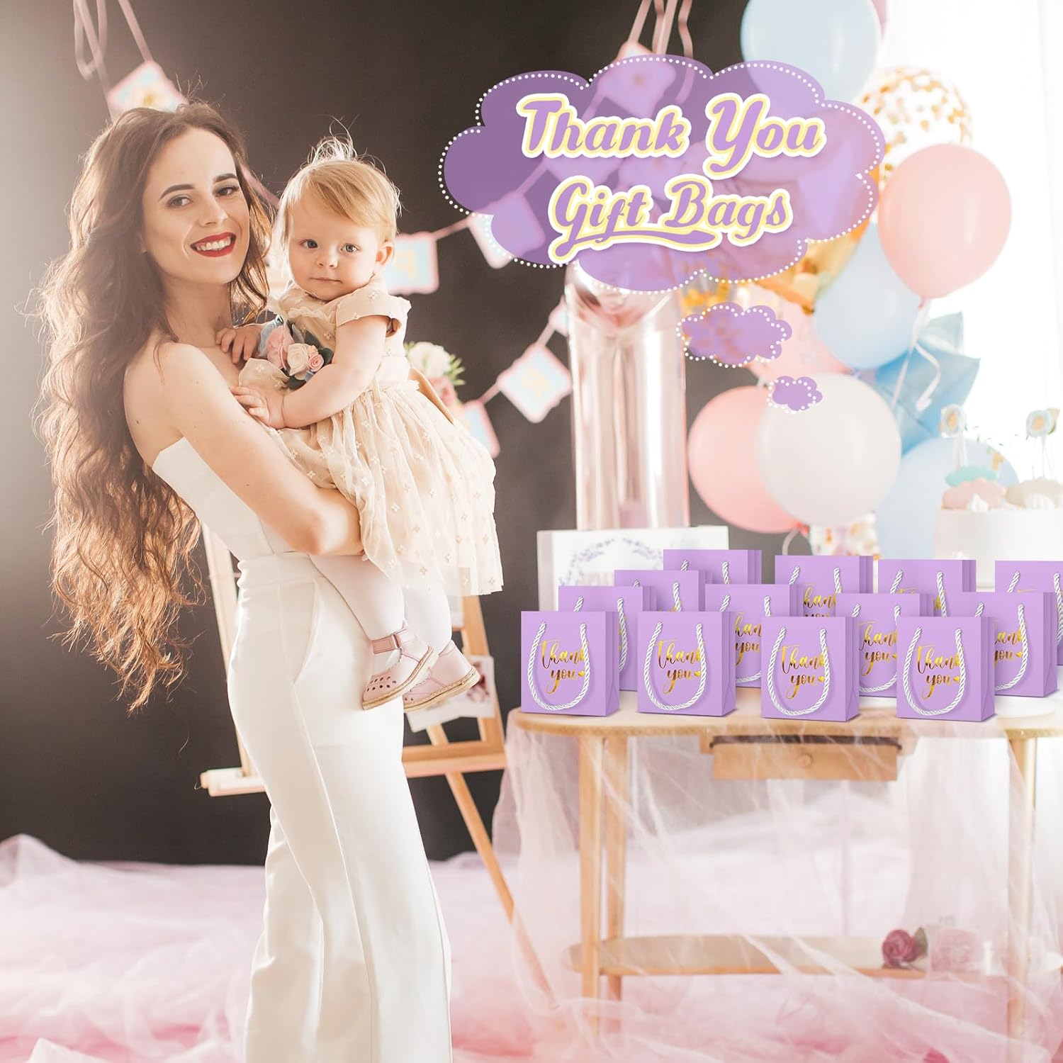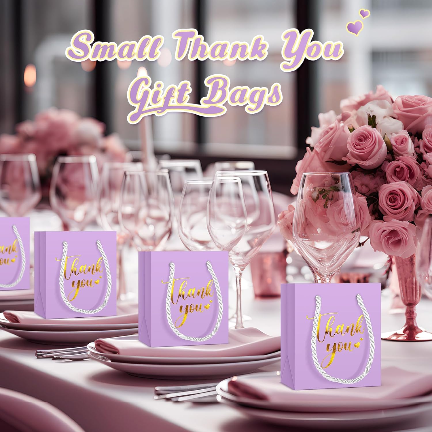 Honoson 30 Pcs Mini Gift Bag with Handle 4 x 2.75 x 4.5” Small Thank You Paper Bag Foil Graduation Gift Bag Wedding Wrap Bag Baby Shower Birthday Party Favor Bag (Light Purple,Gold Stamp)