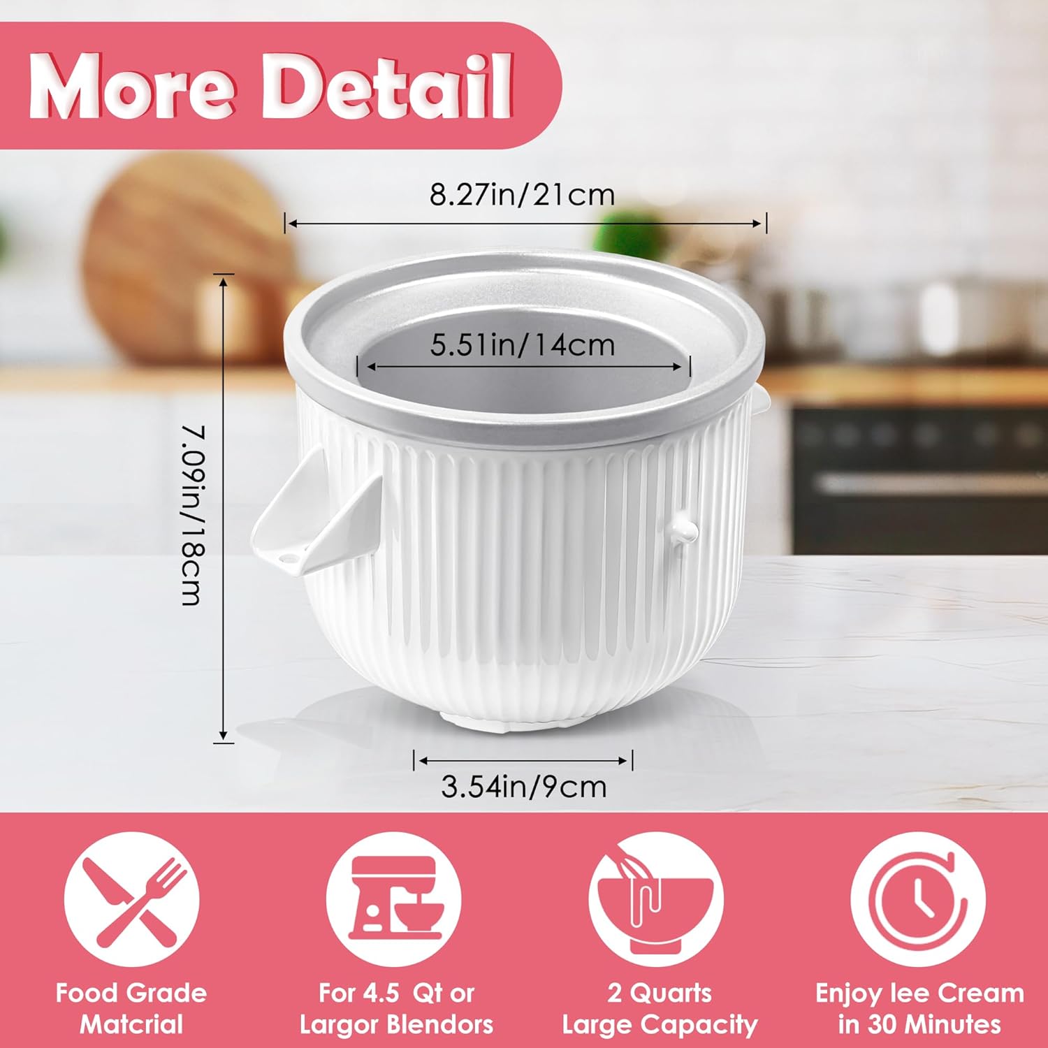 Ice Cream Maker Attachment for Kitchenaid Stand Mixer – Compatible with 4.5 Qt and Larger Stand Mixers – 2 Quart Frozen Yogurt – Ice Cream & Sorbet Gelato Maker