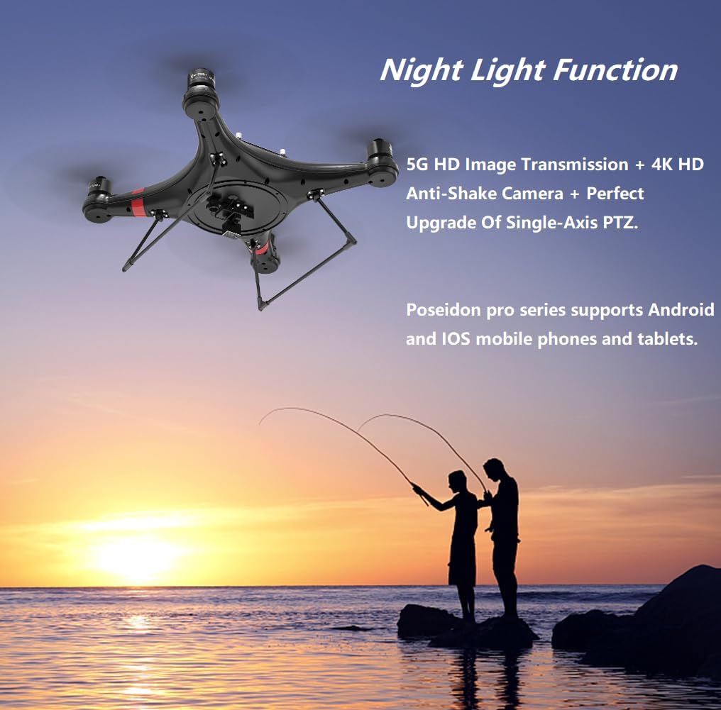 NIGHT LIGHT FUNCTION: 5G HD digital image transmission system combined with night lighting function of Poseidon fishing drone provides great convenience for fishing at night or dark environment.