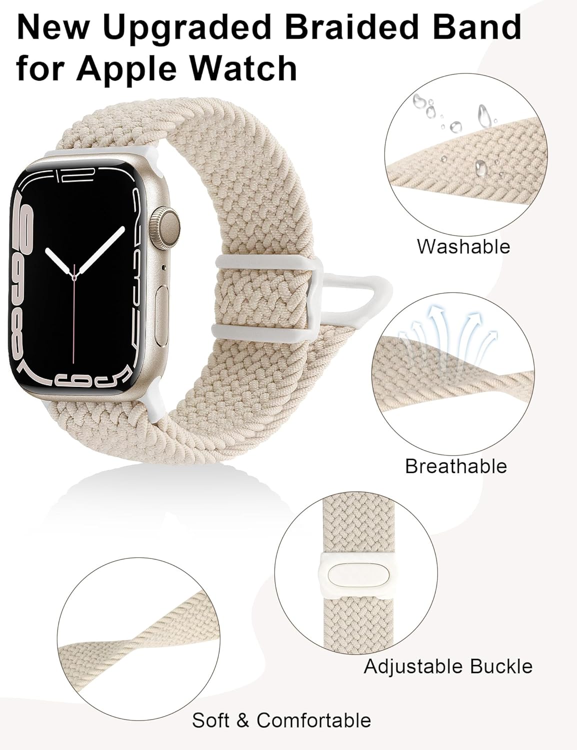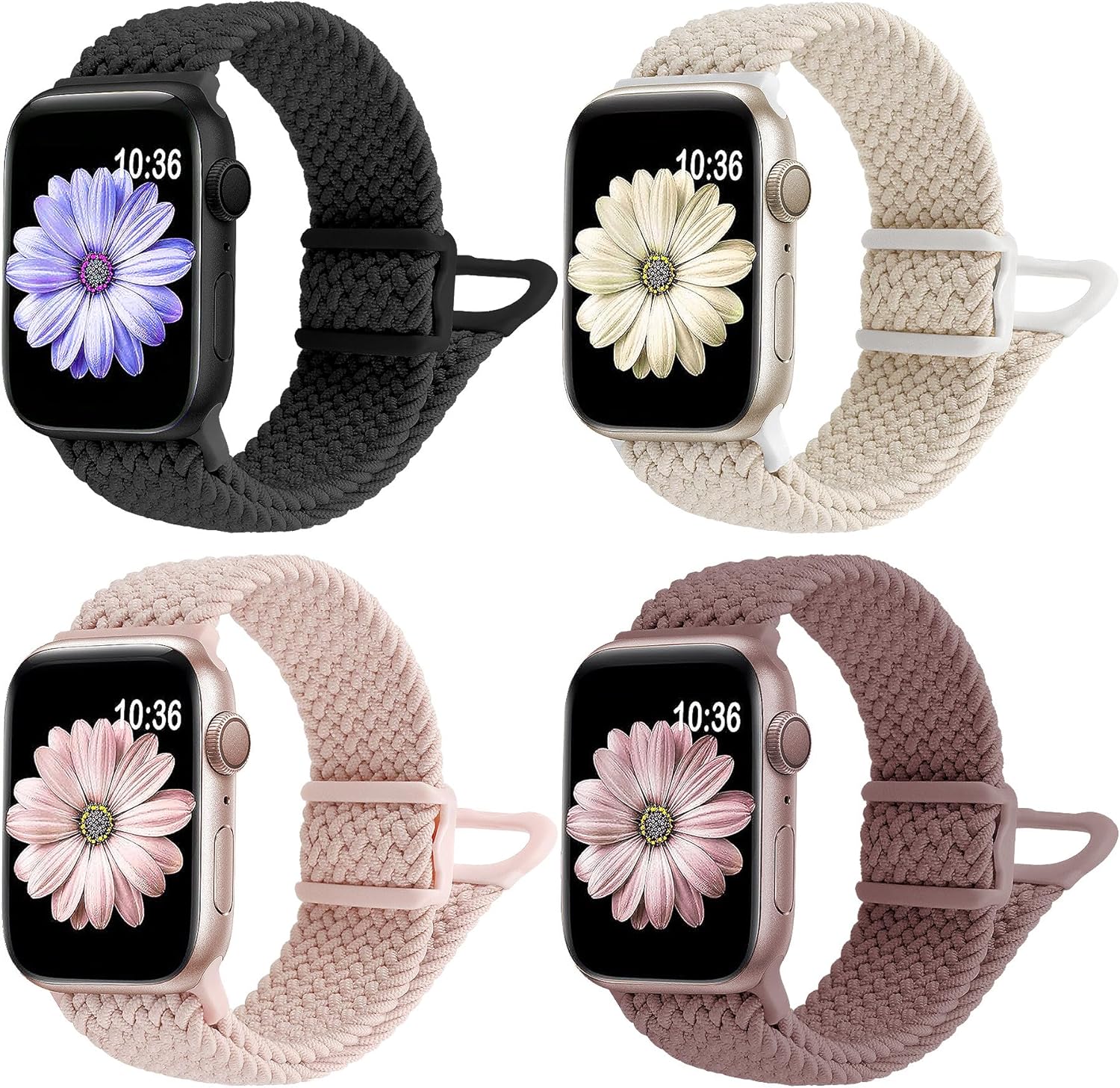 JR.DM 4 Pack Braided Stretchy Adjustable Bands Compatible with Apple Watch 40mm 41mm 38mm 44mm 45mm 42mm 49mm for Women, Elastic Nylon Solo Loop Sport Strap for iWatch Series SE/9/8/7/6/5/4/3/2/1 Ultra Ultra 2