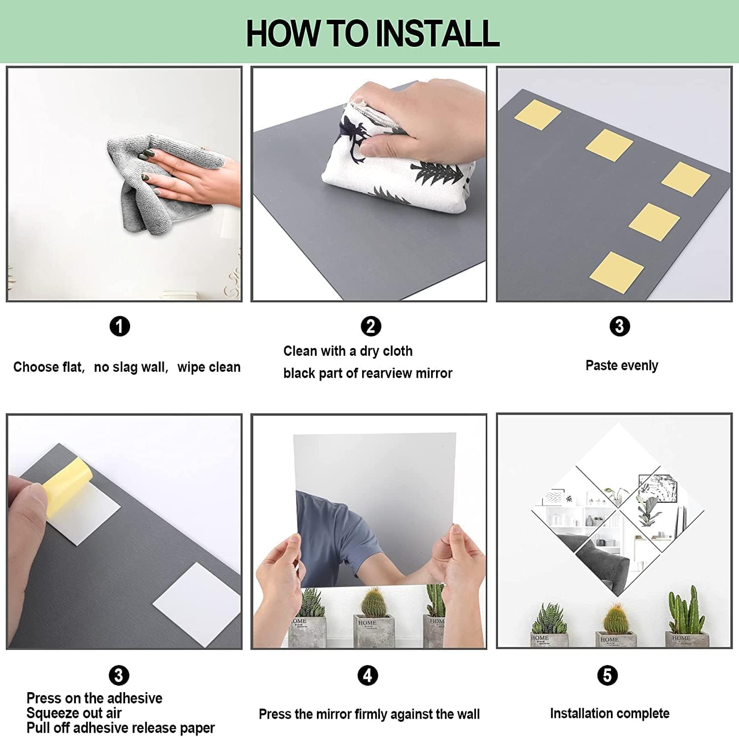 Easy to Assemble:Our mirror sheets are designed with protective film on the surface to protect the mirror,self-adhesive back side is convenient to use,coming with double sided foam tape. easily installed on smooth walls,fix mirrors on the smooth wall surface