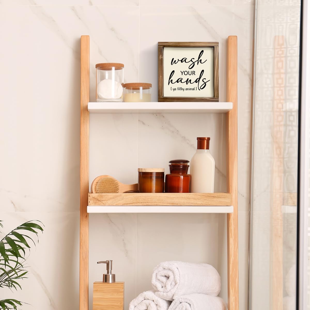 Funny Bathroom Decor: Our wooden bathroom wall decor features hilarious and witty quotes – WASH YOUR HANDS, that will bring a smile to anyone’s face. It’s the perfect way to lighten the mood and create a fun atmosphere in your bathroom.