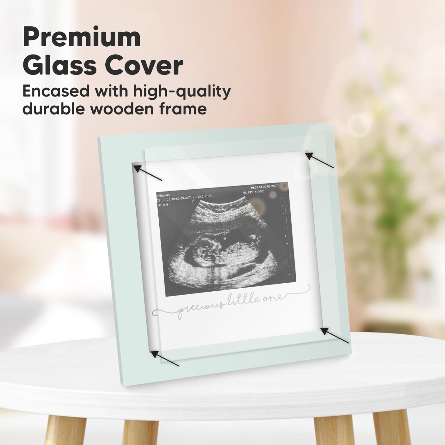 Modern Ultrasound Picture Frames – Our Solo Sonogram Frame sized 7”x7”, features real glass cover and lovingly encased in a premium wooden frame. The smooth and contemporary designed baby frame complements any modern house and nursery decor.