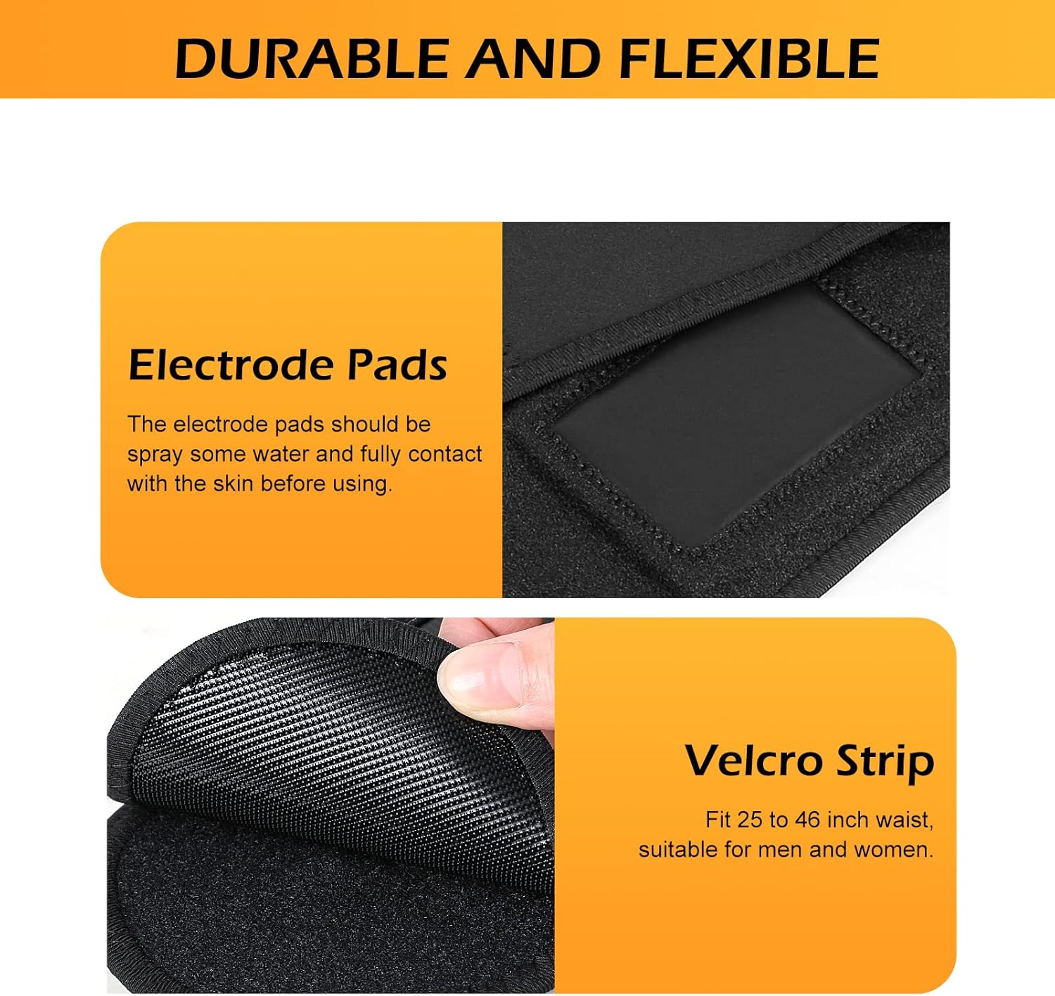 2. Make sure the silicone pads are in contact fully with your skin. The belt should be tight, not loose.