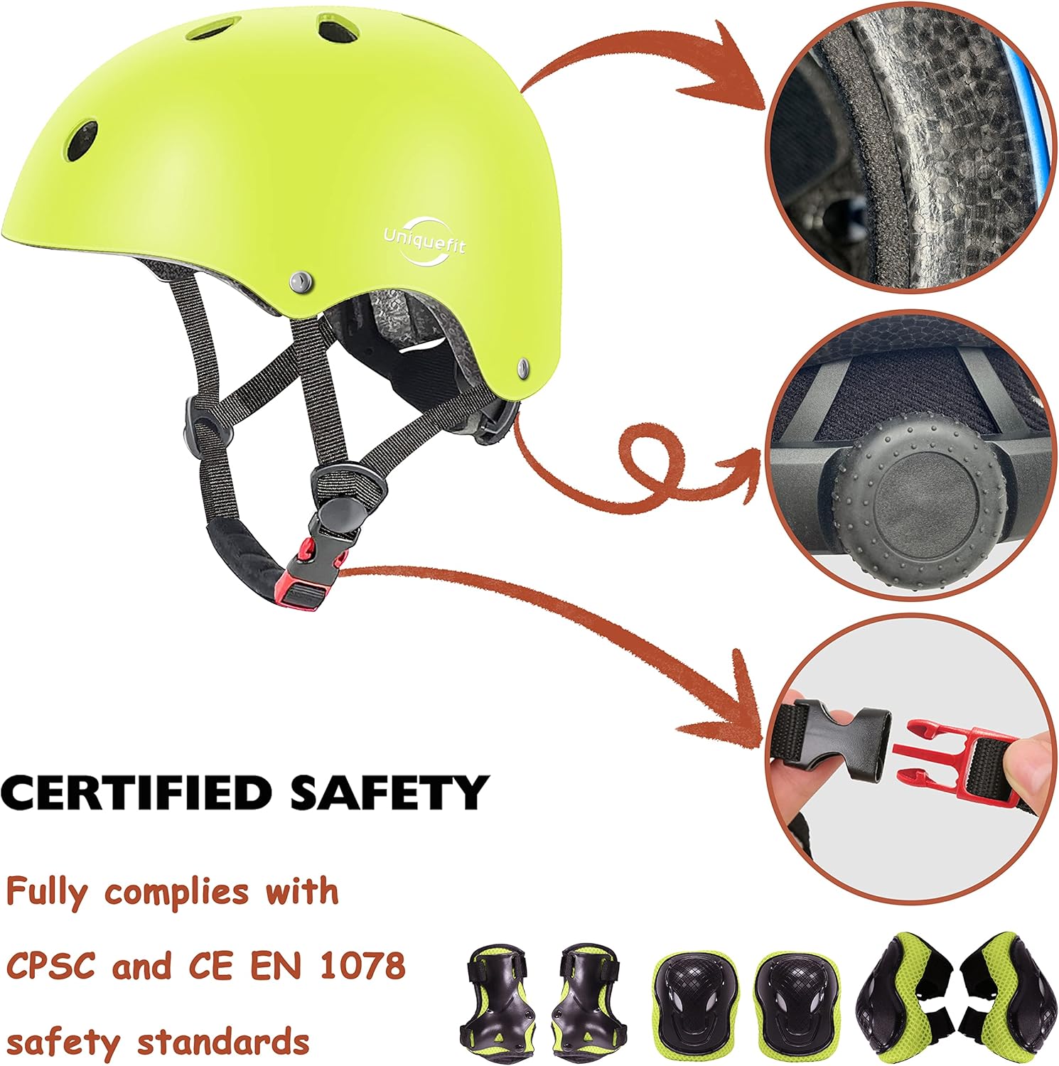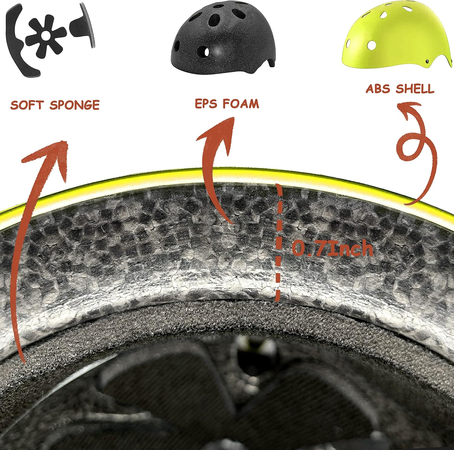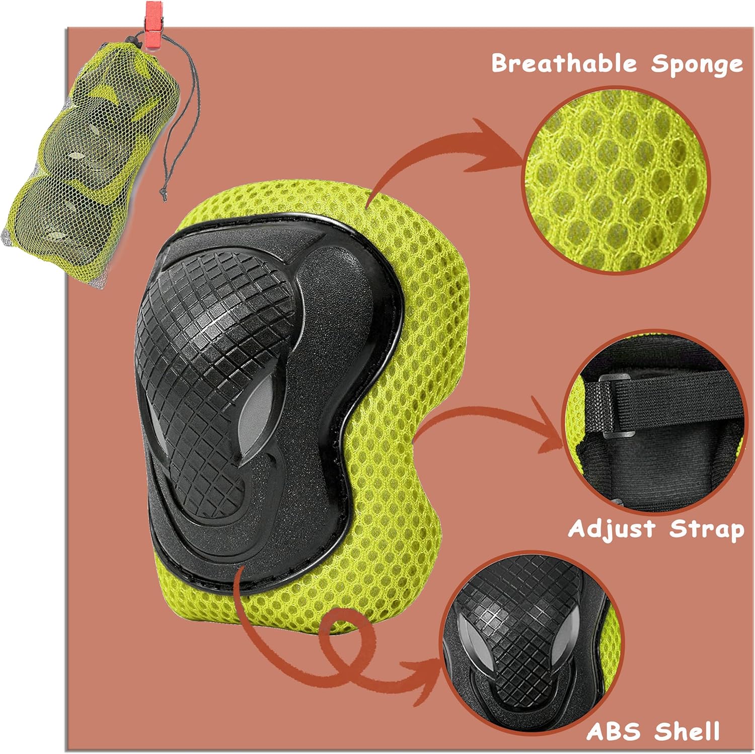 The helmet is made of ABS shell + high-density EPS inner shell + thickened spongeCan effectively absorb impact to protect the head and children’s knees.