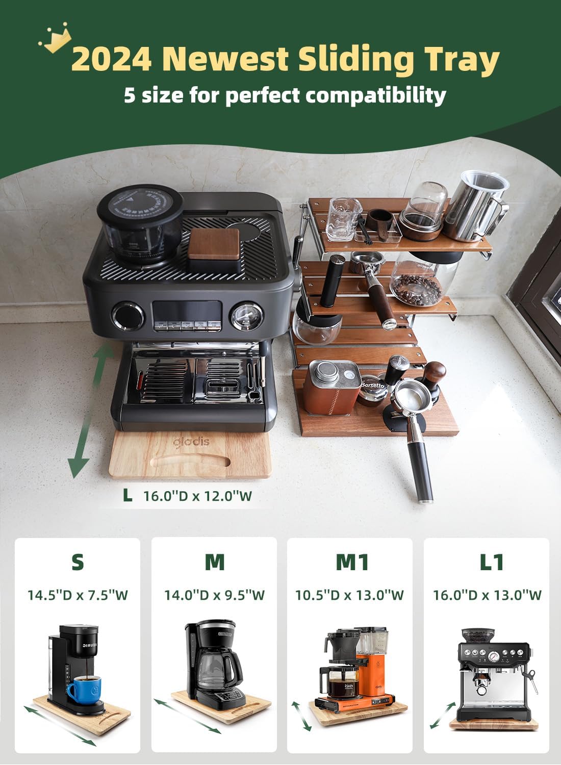 Kitchen Appliance Sliding Tray, [Upgraded Premium Rubber Wood] Gladis Countertop Slider under Cabinets, Easily Pull Out Rolling Tray for Keurig Single Cup, Cold Brew, Single Serve Coffee Maker