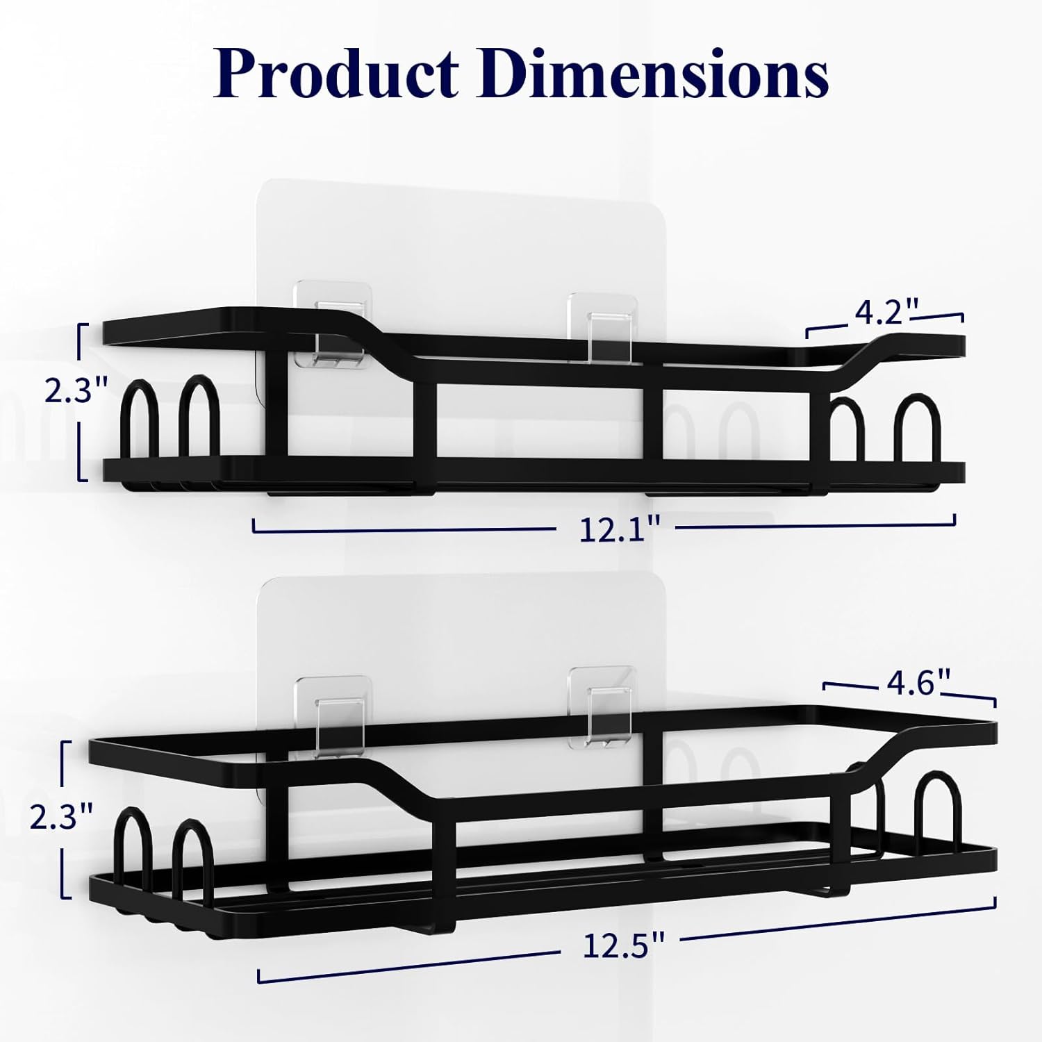 Kitsure Shower Caddy X-Large – Adhesive Shower Organizer, Stainless Steel Shower Shelf for Inside Shower, No Drill Bathroom Organizers and Storage, Home Decor Accessories, 2 Pack, Black