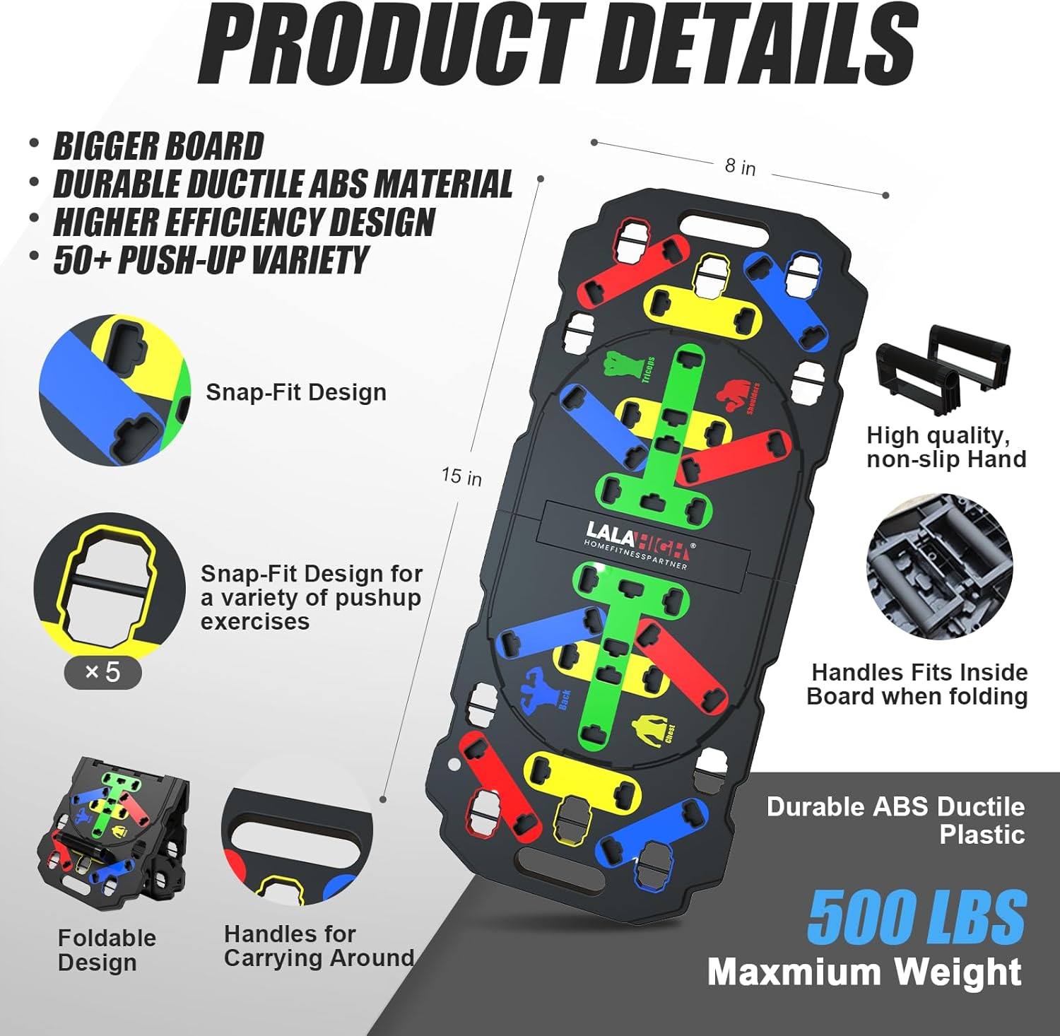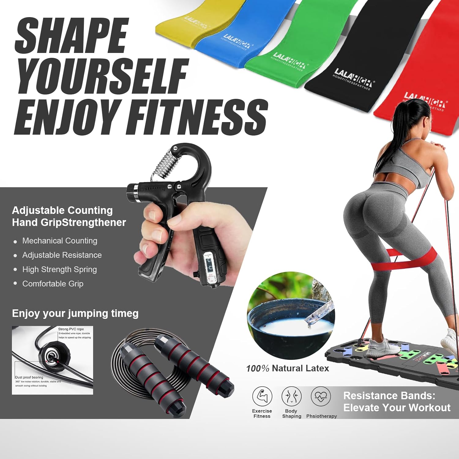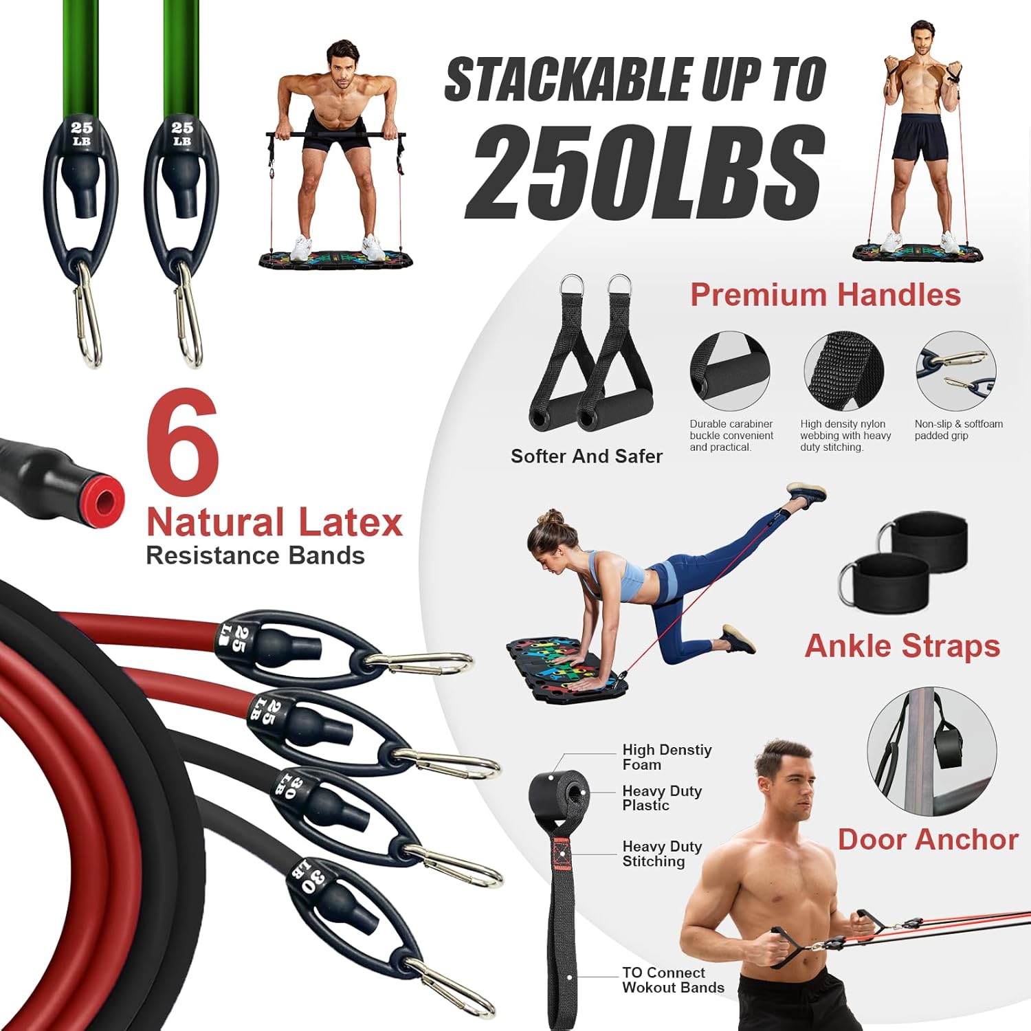 Professional Workout Kit: Elevate your fitness game at home with a color-coded pushup board and resistance bands set. Versatile workouts for strength, resistance, and cardio—all in one kit.
