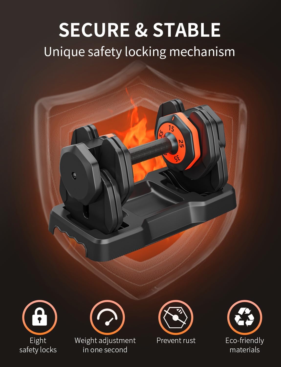 【Versatile Fitness Equipment】Our adjustable dumbbells are perfect for body shaping, overall health, and even weight loss. They can help improve your core fitness and are great for a variety of exercises.