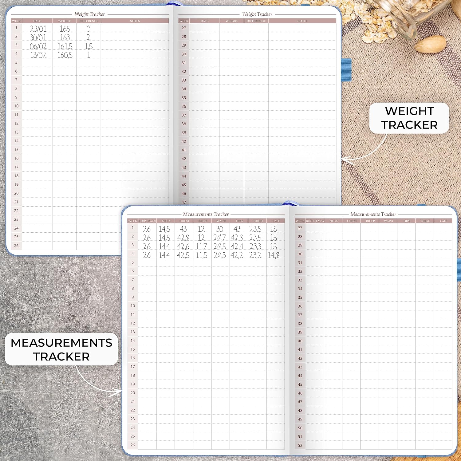 TRACK YOUR WEIGHT, MEASUREMENTS & DAILY HABITS – Use convenient trackers to track your weight, body measurements, and daily habits. This way, you can use your food diary to visualize your weekly progress and see what’s working well and what can be improved.