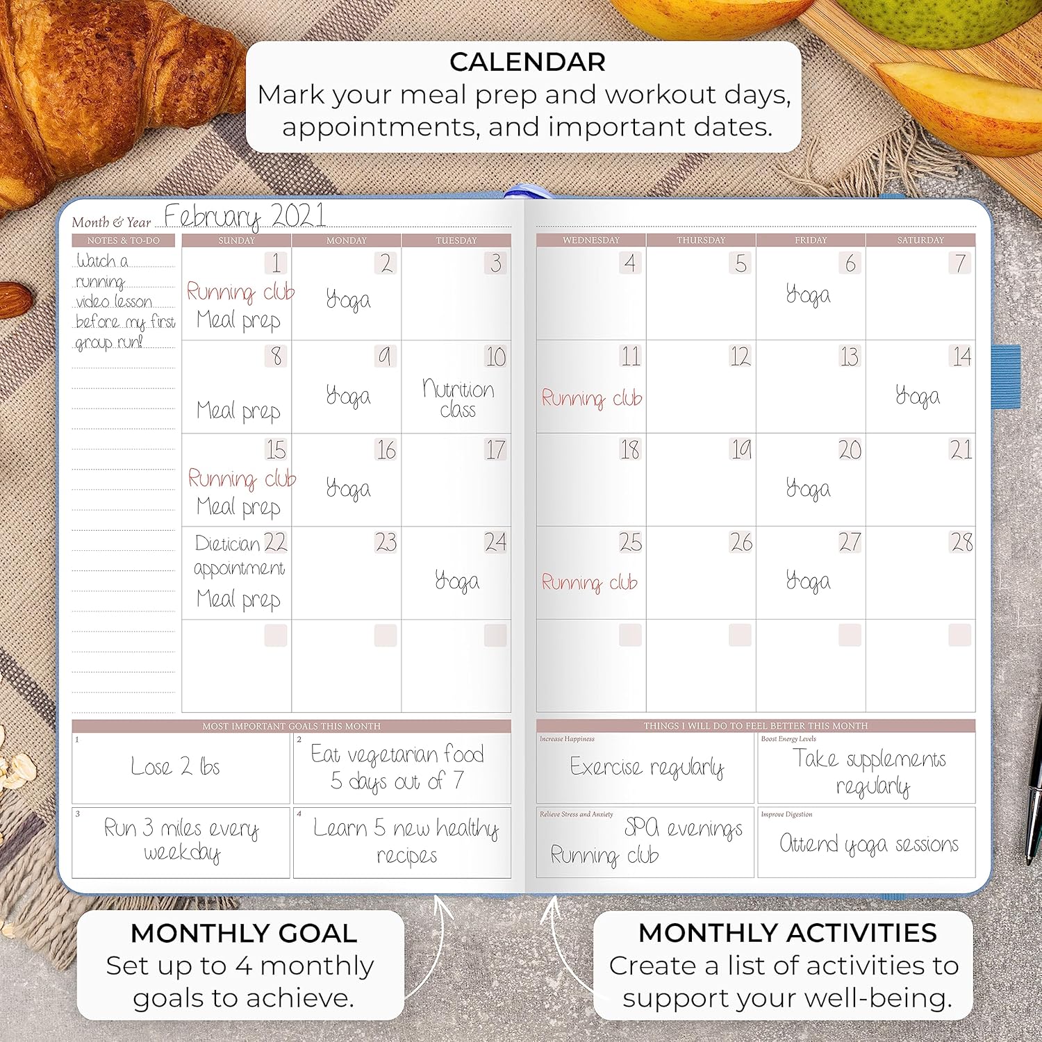 Prep for your weeks with detailed meal planning that keeps your nutrition on track Detailed daily wellness tracking to reach your health goals Blank cookbook to keep all of your favorite recipes on hand