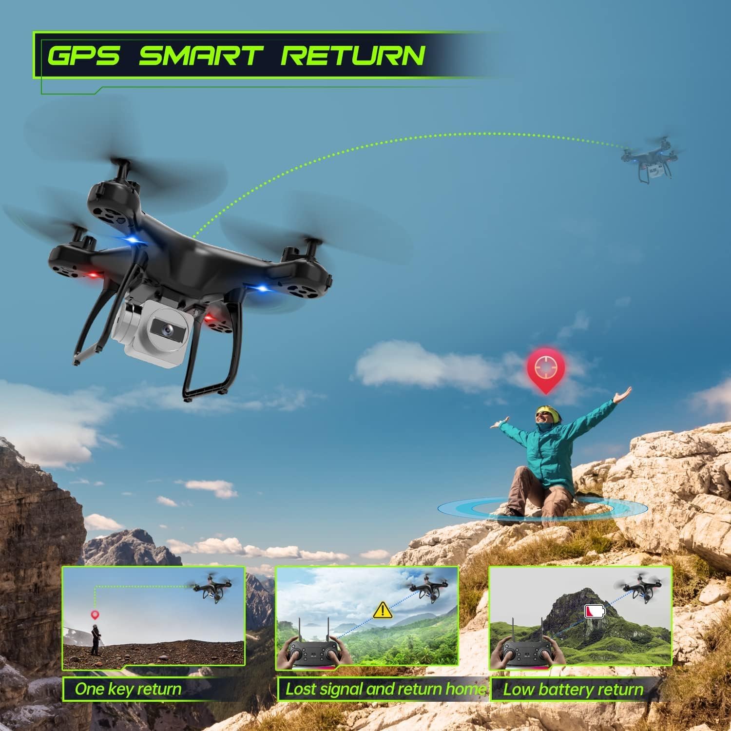 🔥【 No Risk Of Losing Drone 】No need to worry about losing the drone, when the control signal is lost or the power is too low, the drone will start the return function and automatically return to the take-off location. When you want to end the flight, you can also manually press the return button.