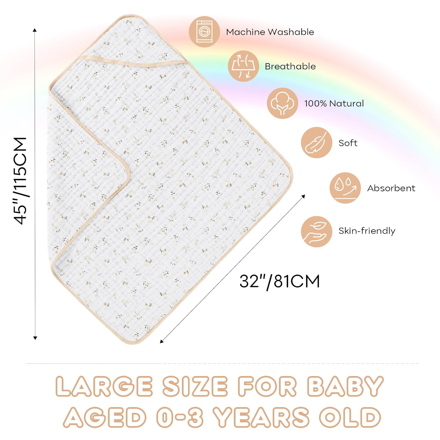 High Absorbency: The 6-layer muslin baby towels absorb water three times than cotton baby towels , keeping your baby dry and clean quickly after baths. Adorable hooded design makes this baby towels with hood an awesome baby shower gift!