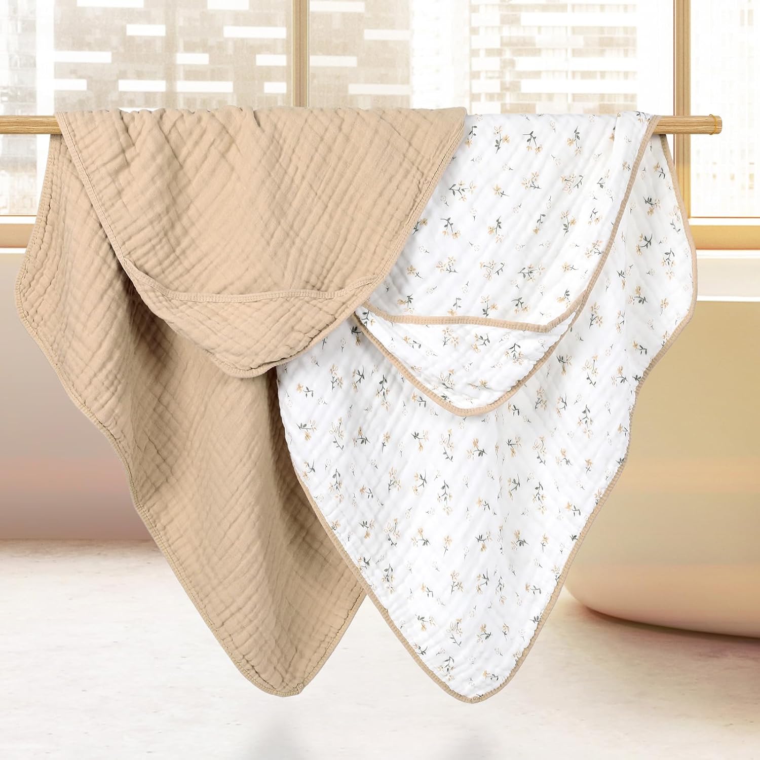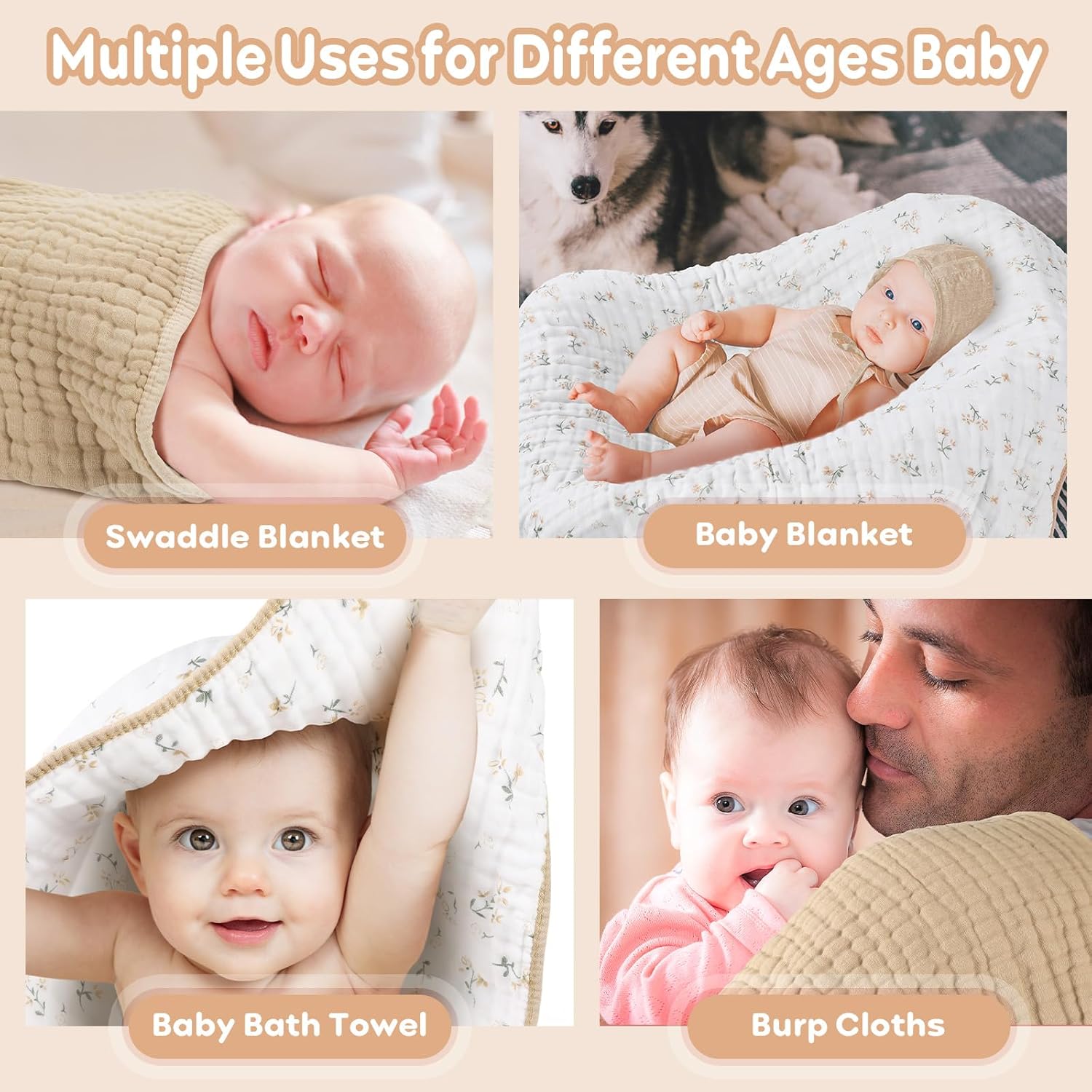 Soft&Gentle: Our baby towels are crafted from premium 100% muslin cotton , the fabric of our muslin baby towels are more delicate and gentle, which is more suitable for baby’s delicate skin than normal cotton baby bath towels.