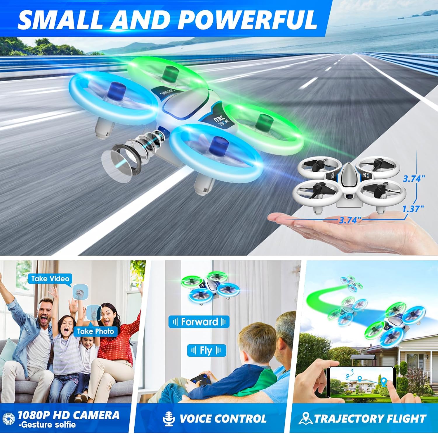 【The Perfect Gift for Kids】Pocket drone with BLUE&GREEN Lights ! HD 1080P FPV Camera ! 3D Flips,Mobile APP Control System and 3 Batteries! These making it the perfect toy gift for kids’s birthdays, Halloween, Christmas, Thanksgiving, and other holidays. It brings great fun for home gatherings, schools, outdoor trips, and other places!