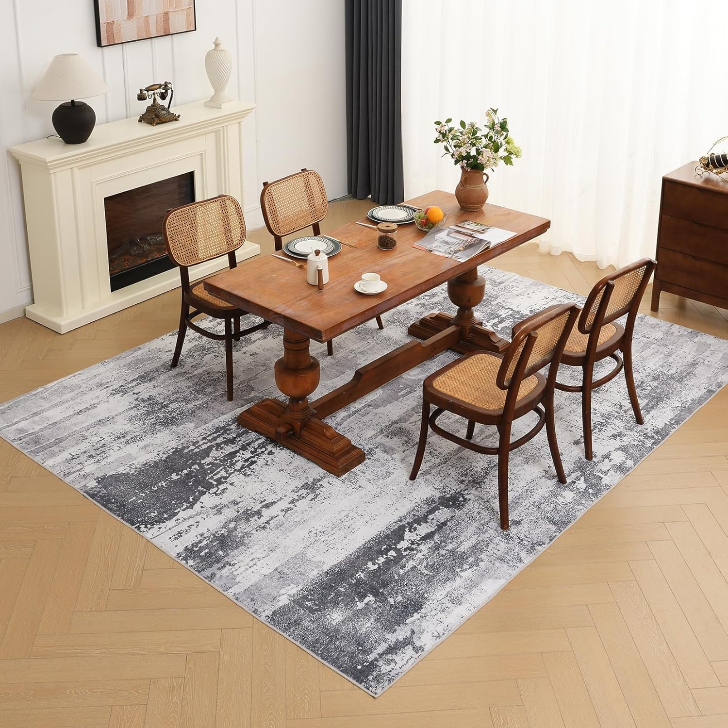 Machine Washable Rug 5’x7′ Abstract Washable Area Rugs for Living Room Non Slip Rugs for Bedroom Modern Woven Rug Boho Rug Soft Carpet Kitchen Dining Rugs Home Decor Office Rug Grey (Grey)